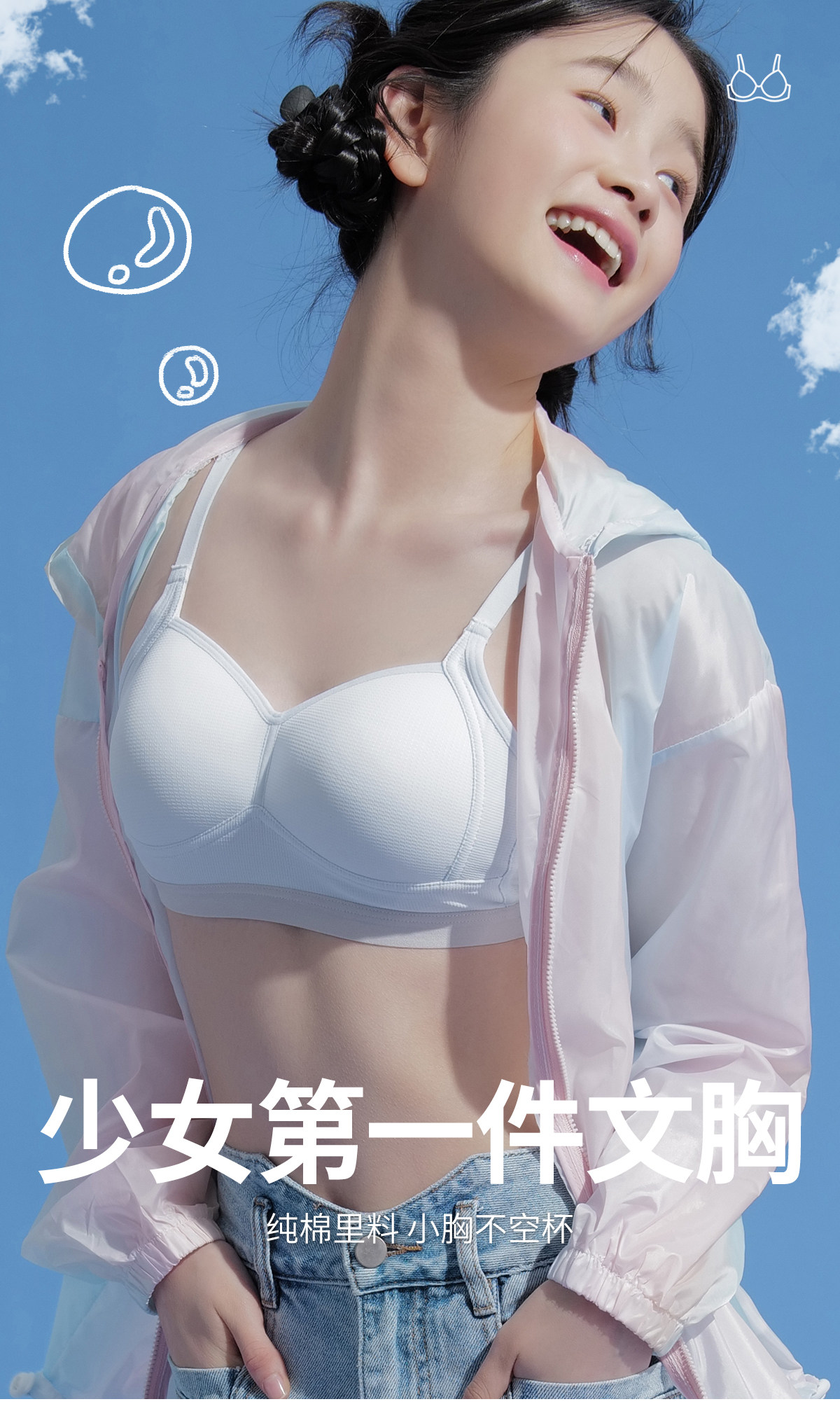 Хлопковое тонкое нижнее белье, бюстгальтер пуш-ап для школьников, бюстгалтер, подходит для студента