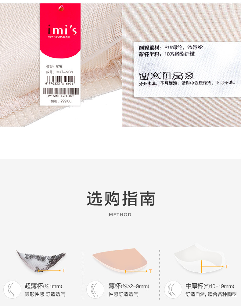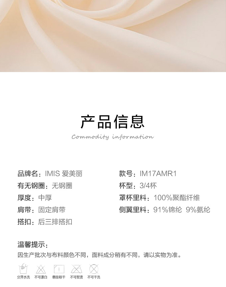 Аймеи аймеи нижнее белье без стальных колец и маленьких груди, собравшихся, чтобы сделать большой твердый цвет 3/4 сгущенного бюстгальтера IM17AMR1