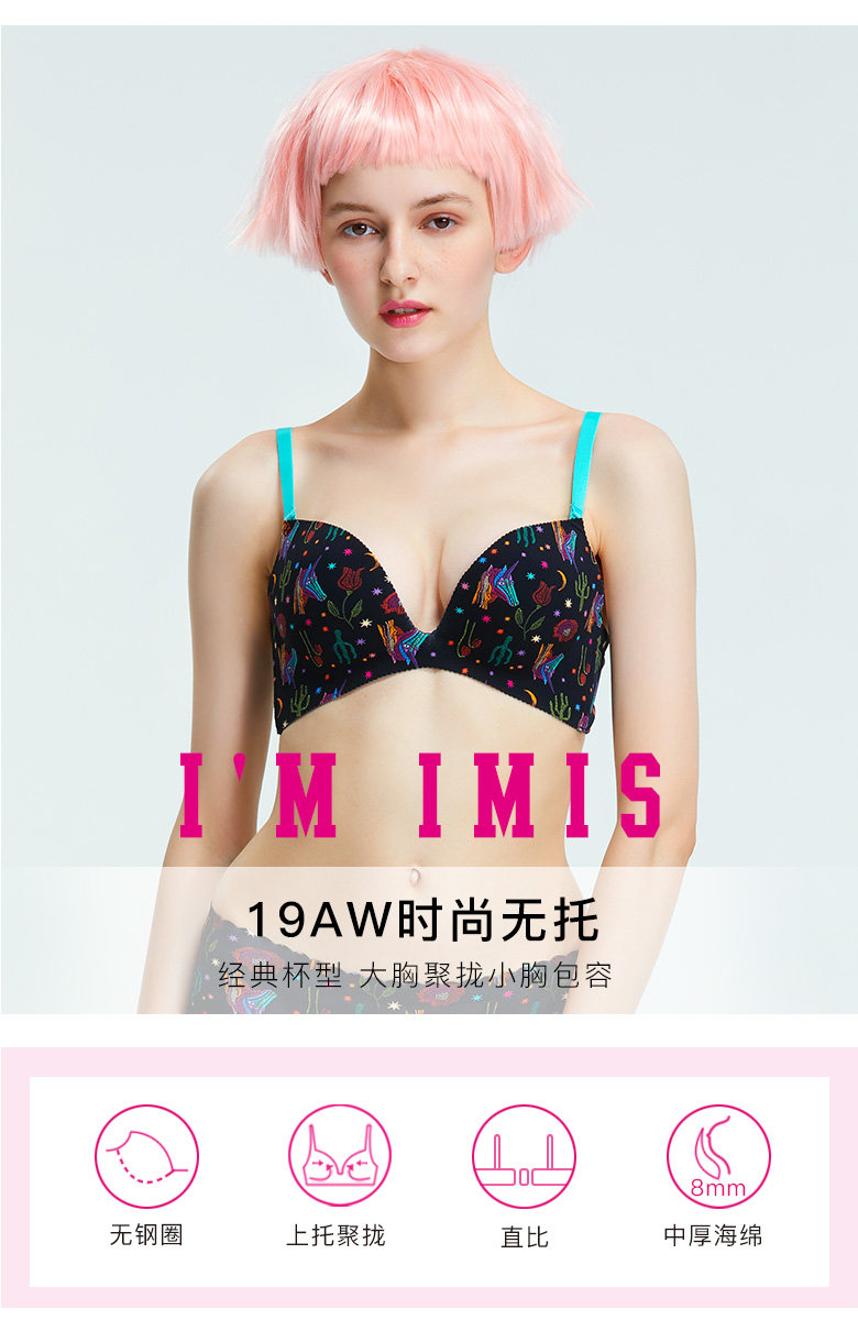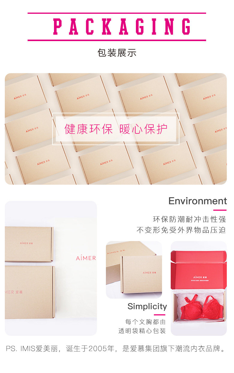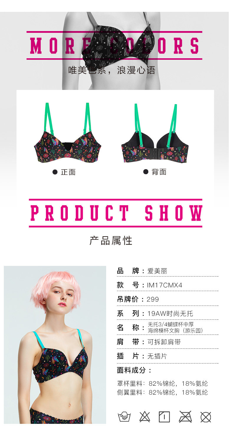 爱美丽 Нижнее белье без стальных колец, маленькая грудь приподнимается, чтобы казаться больше, однотонный бюстгальтер средней толщины 3/4 IM17CMX4
