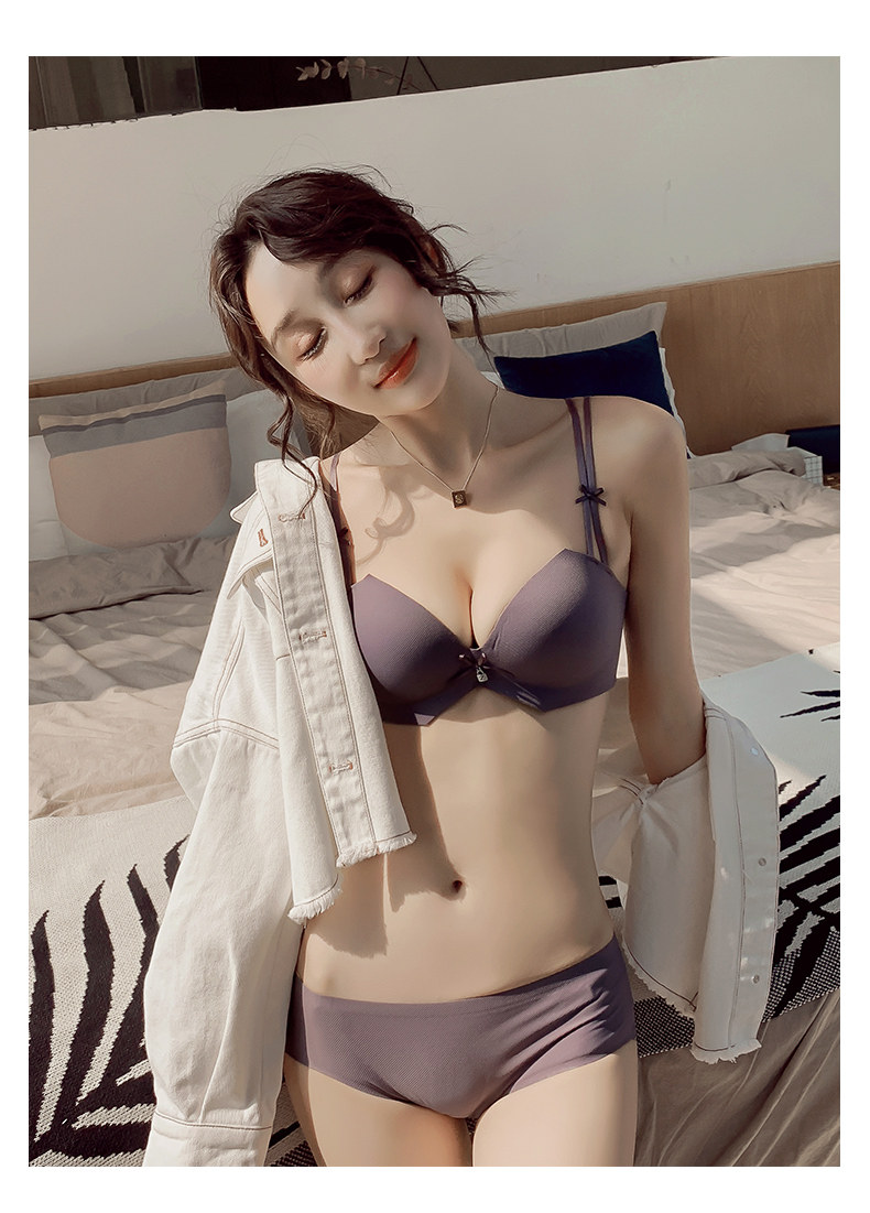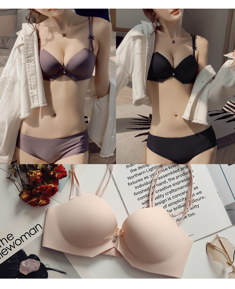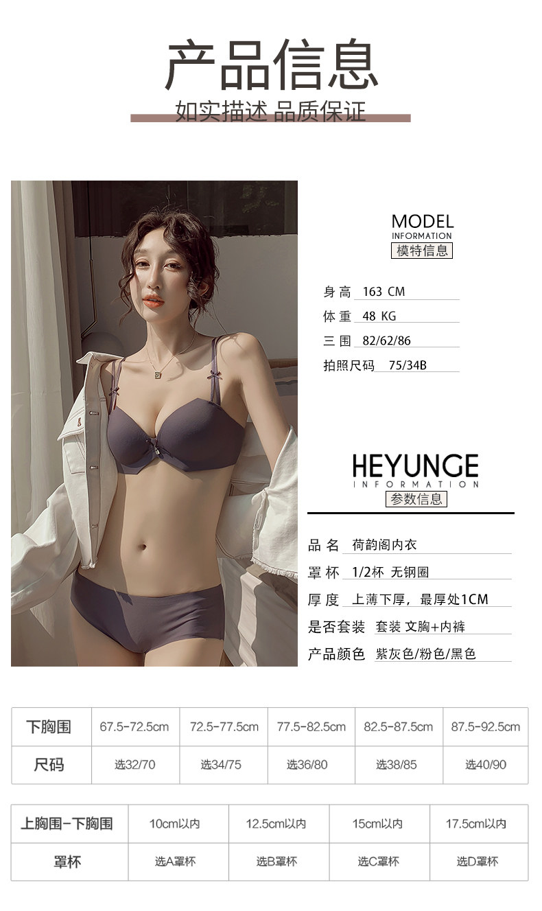 荷韵阁 Сексуальное нижнее белье, комплект, легкий и тонкий бюстгальтер пуш-ап, дышащий бюстгальтер без косточек, красивая спина