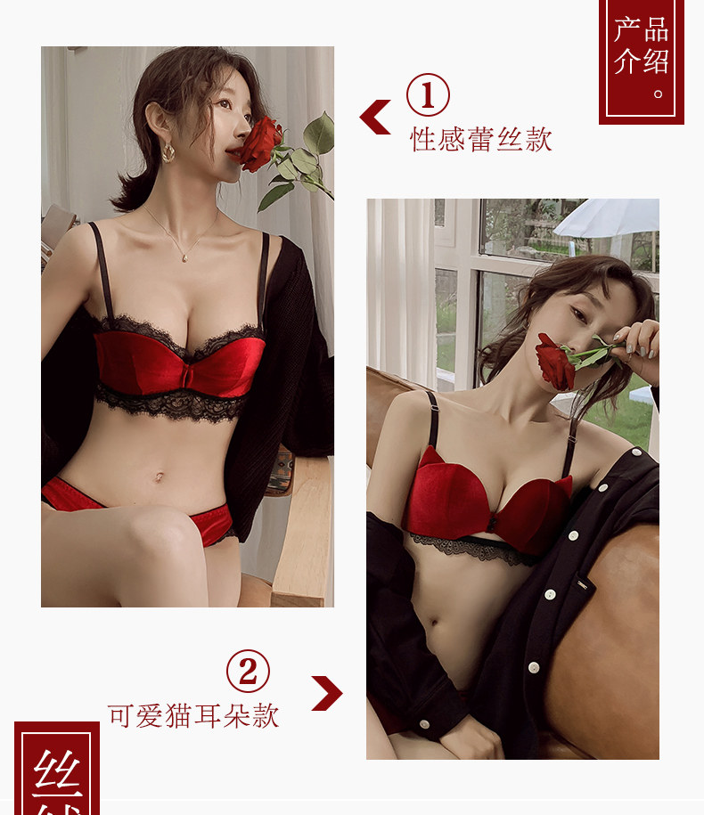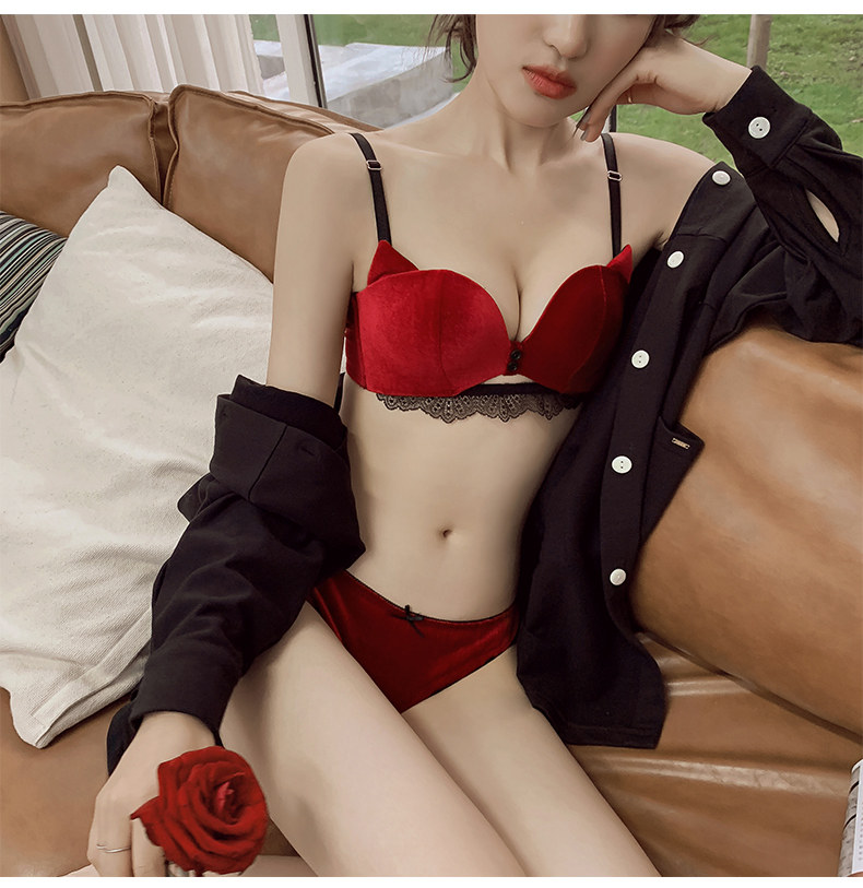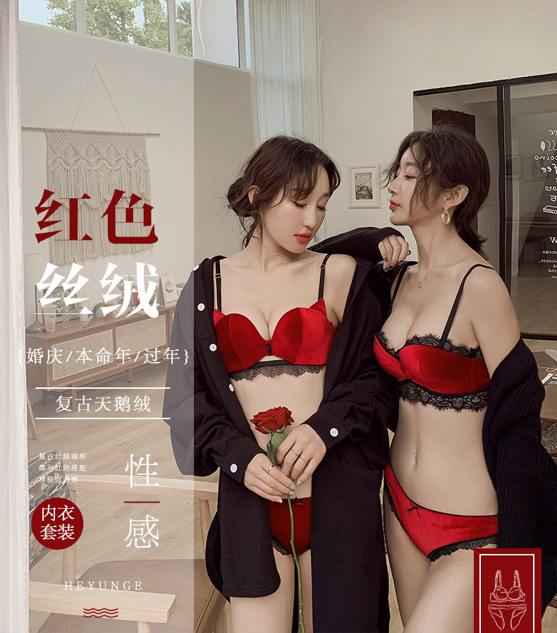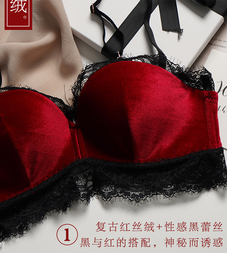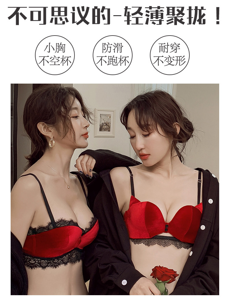 Сексуальный бюстгальтер пуш-ап, красный оберег на день рождения, бархатный бюстгальтер без косточек, нижнее белье, поддерживающий бюстгалтер, комплект