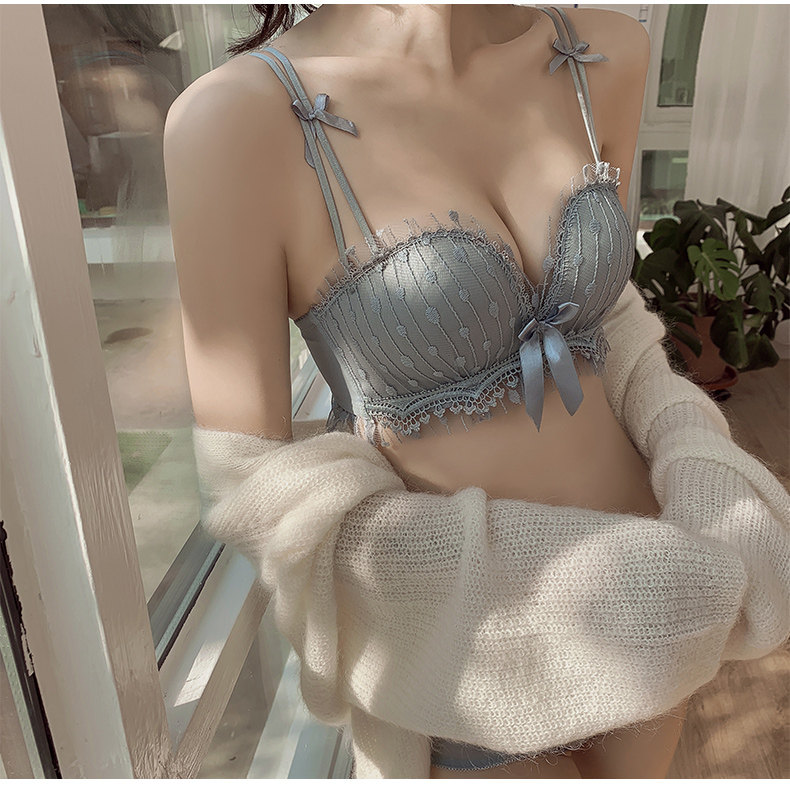 Поддерживающее нижнее белье, милый зимний тонкий бюстгальтер без косточек, бюстгалтер для кормящих грудью, комплект, красивая спина
