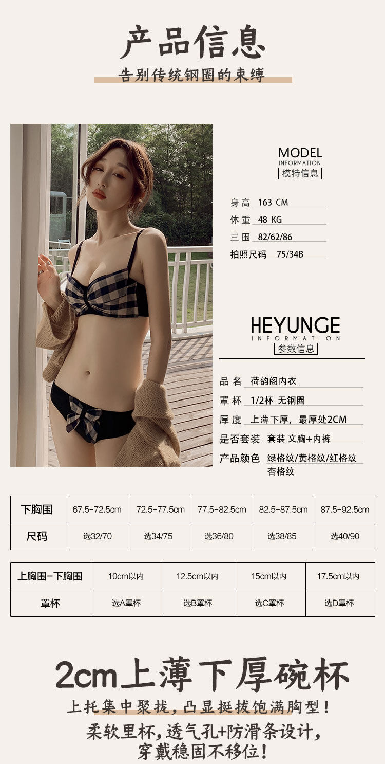 荷韵阁 Ретро бюстгальтер пуш-ап, демисезонное нижнее белье, бюстгальтер без косточек, бюстгалтер для кормящих грудью, комплект