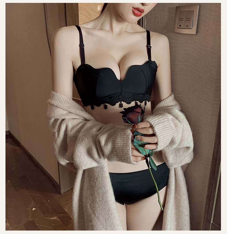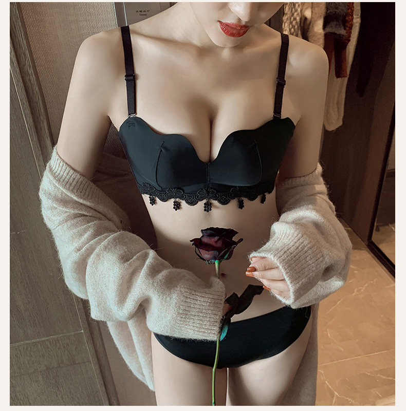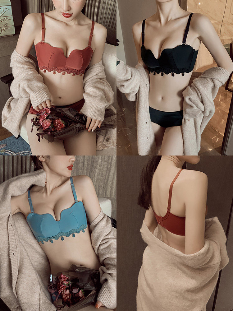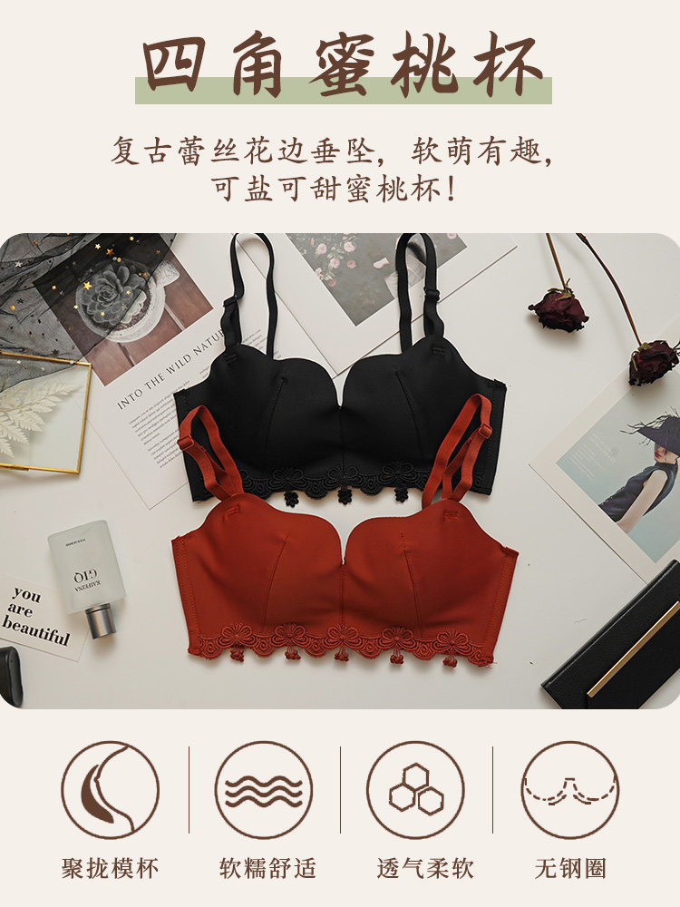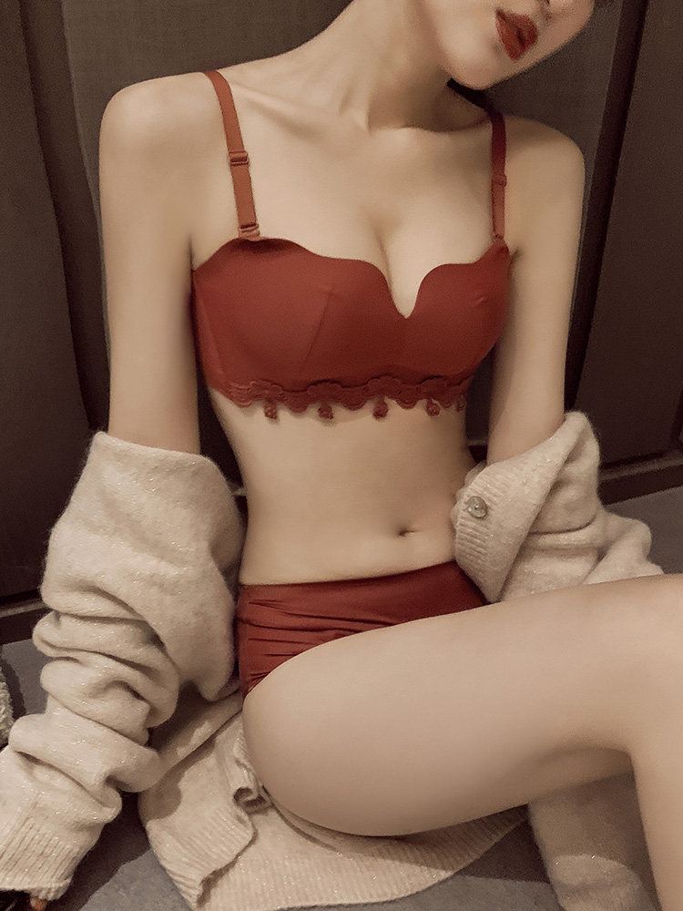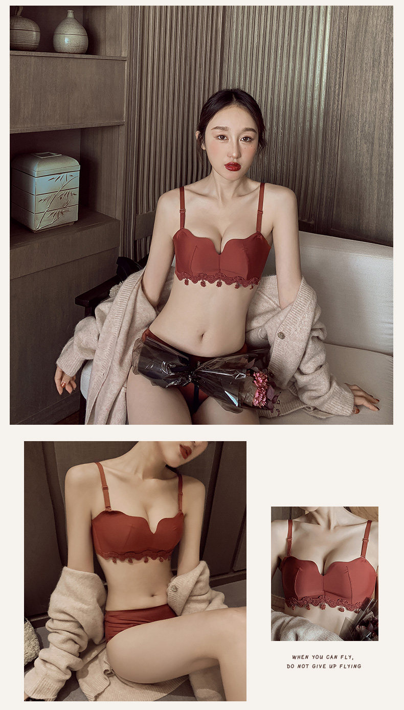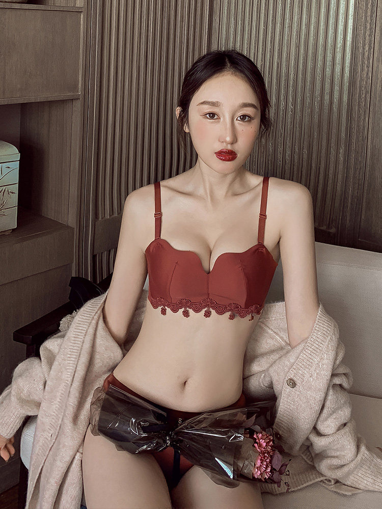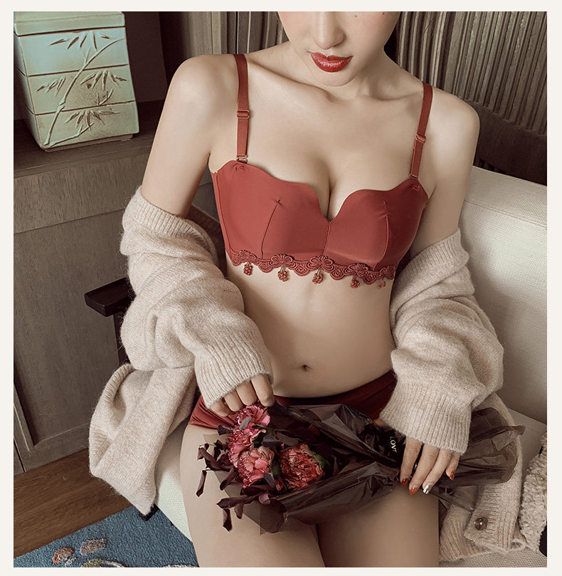 荷韵阁 Кружевной красный бюстгальтер пуш-ап, праздничнное нижнее белье, бюстгальтер без косточек, бюстгалтер, комплект, увеличенная толщина