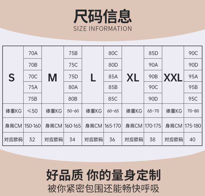 | Размер: | М (рекомендуется 70ABC и 75AB), L (рекомендуется 100-120 Catties 75BCD & 80AB), XL (рекомендуется 120-130 Catties 80CD и 85ABC), XXL (предложение 130-140 Catties 85d и 90abcd) |