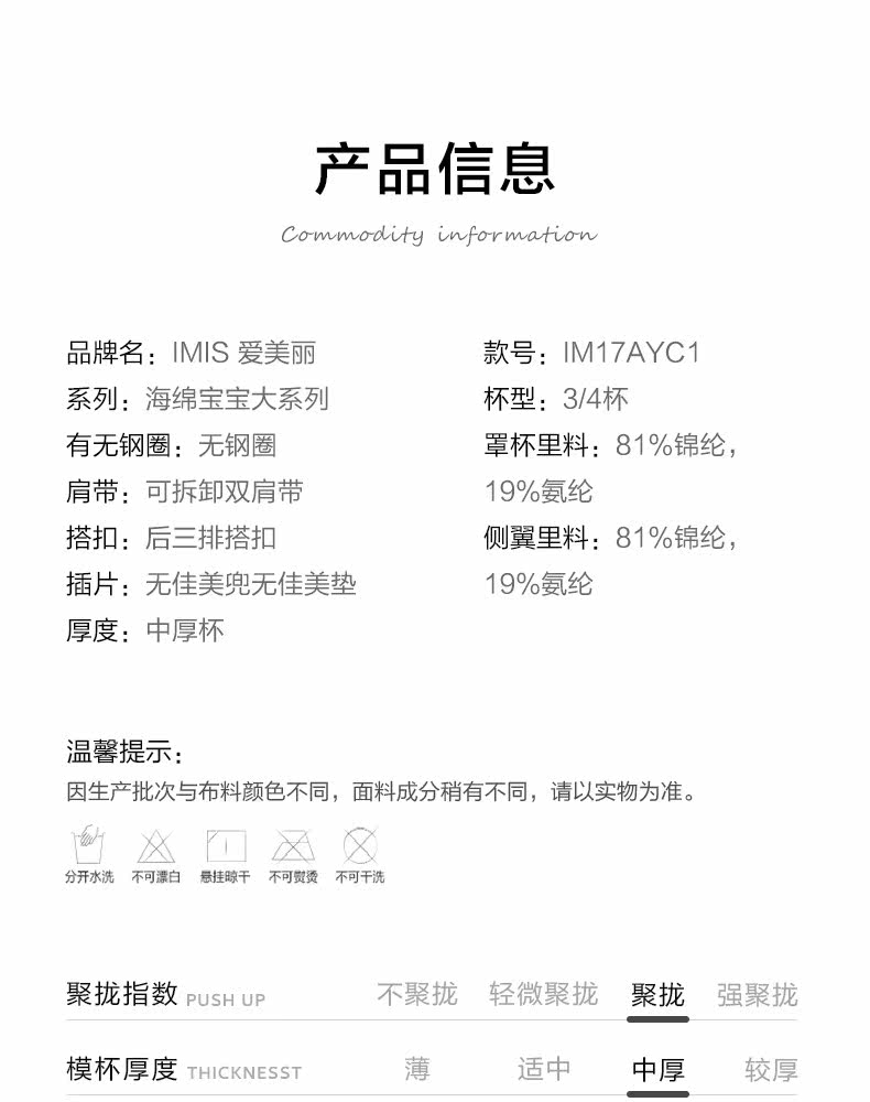 爱美丽 Нижнее белье без стального кольца, маленький грудь собирается, показывая большой принцип 3/4 толстых груди IM17AYC1