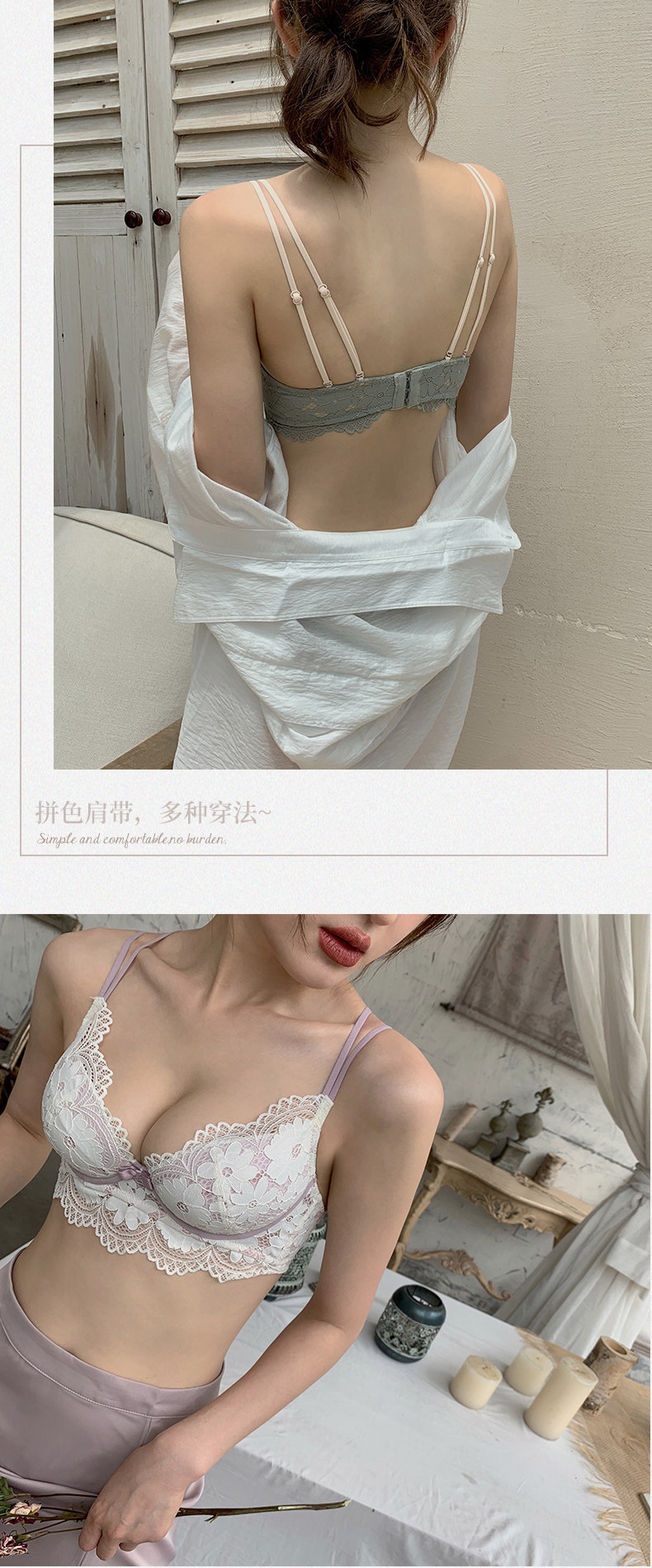 Демисезонный тонкий бюстгалтер, нижнее белье, сексуальный бюстгальтер пуш-ап со стальными косточками, комплект, красивая спина