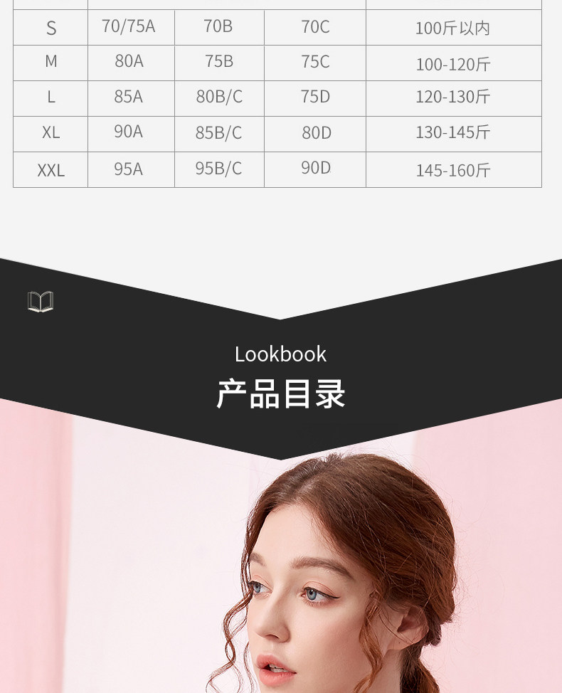 | Размер: | S [70/75A 70BC] (в пределах 100 фунтов), M [80a 75b 75c] (100-120 Catties), L [85A 80BC 75D] (120-130 Catties), XL [90A 85BC 80D] (130-145 Catties), XXL [95A 95BC 90D] (145-160 Catties) |
