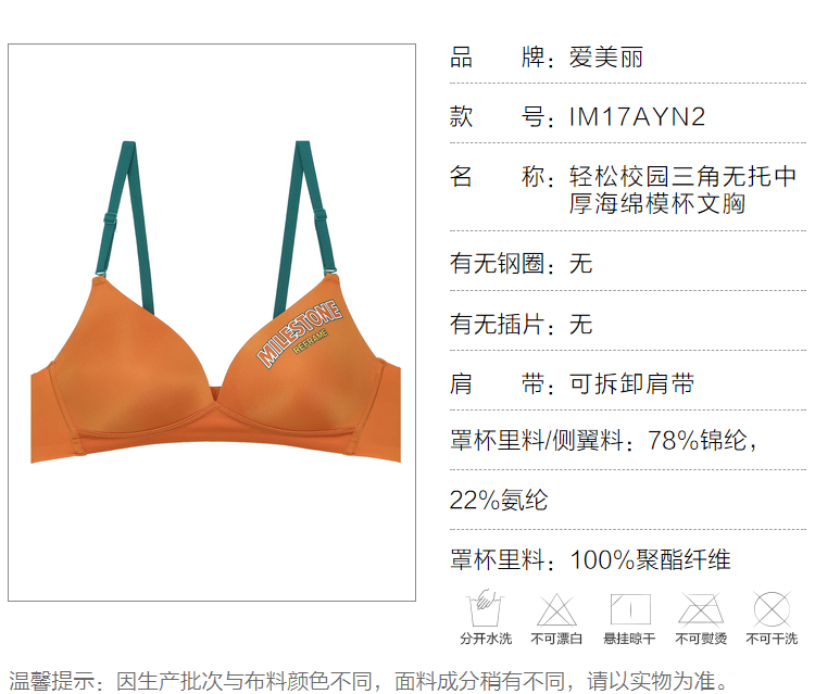 爱美丽 Нижнее белье без стального кольца, маленькая грудь, сборный, показывающий густой треугольник чашки, Bray Im17ayn2