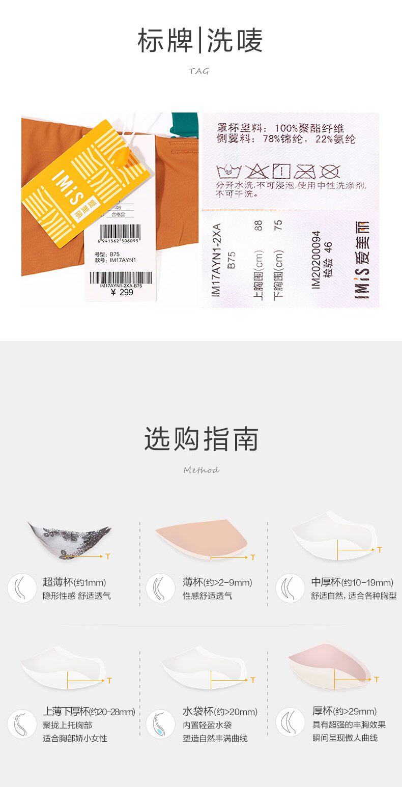爱美丽 Закусовое нижнее белье без стальных дисков, маленькая грудь, собранная, большая световая печать 3/4 толстых груди IM17AYN1