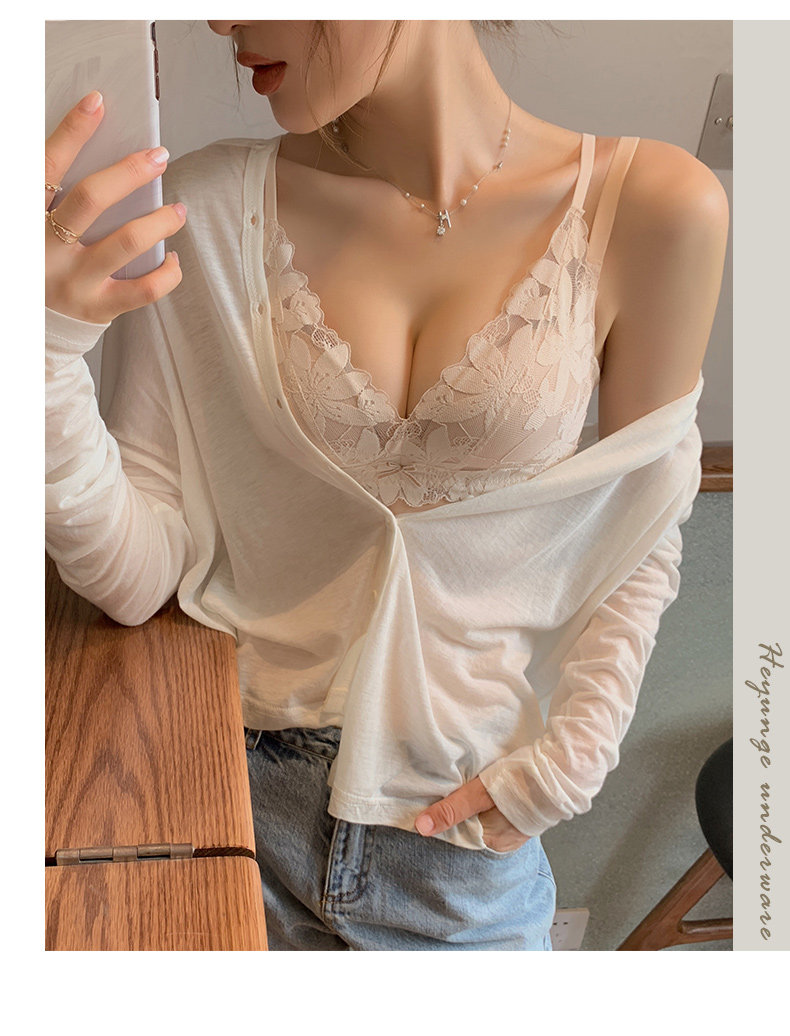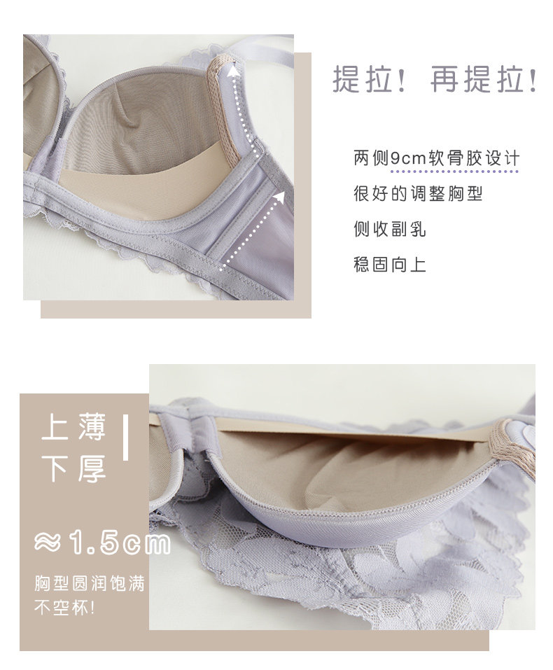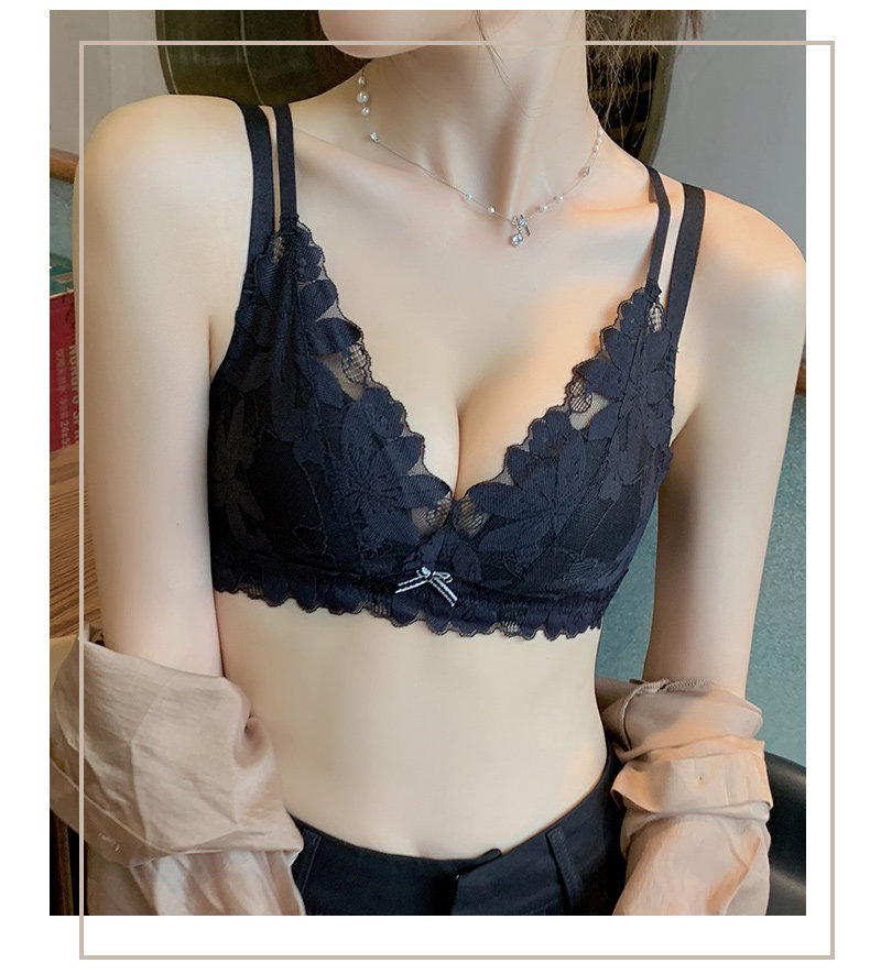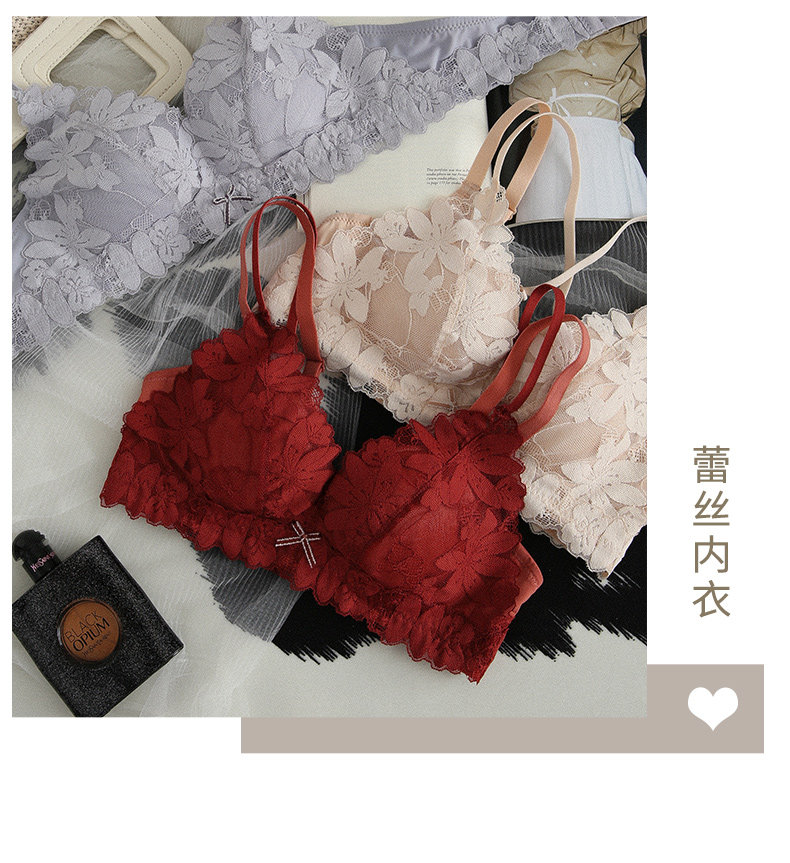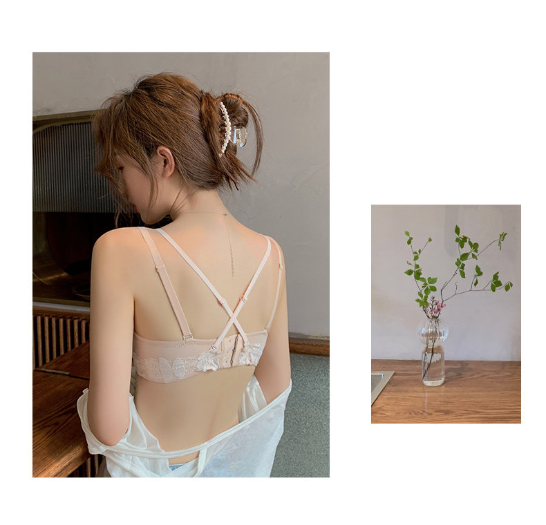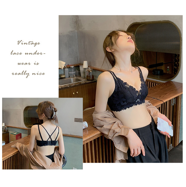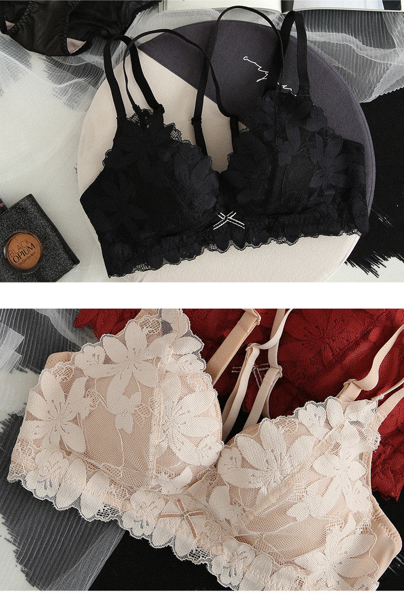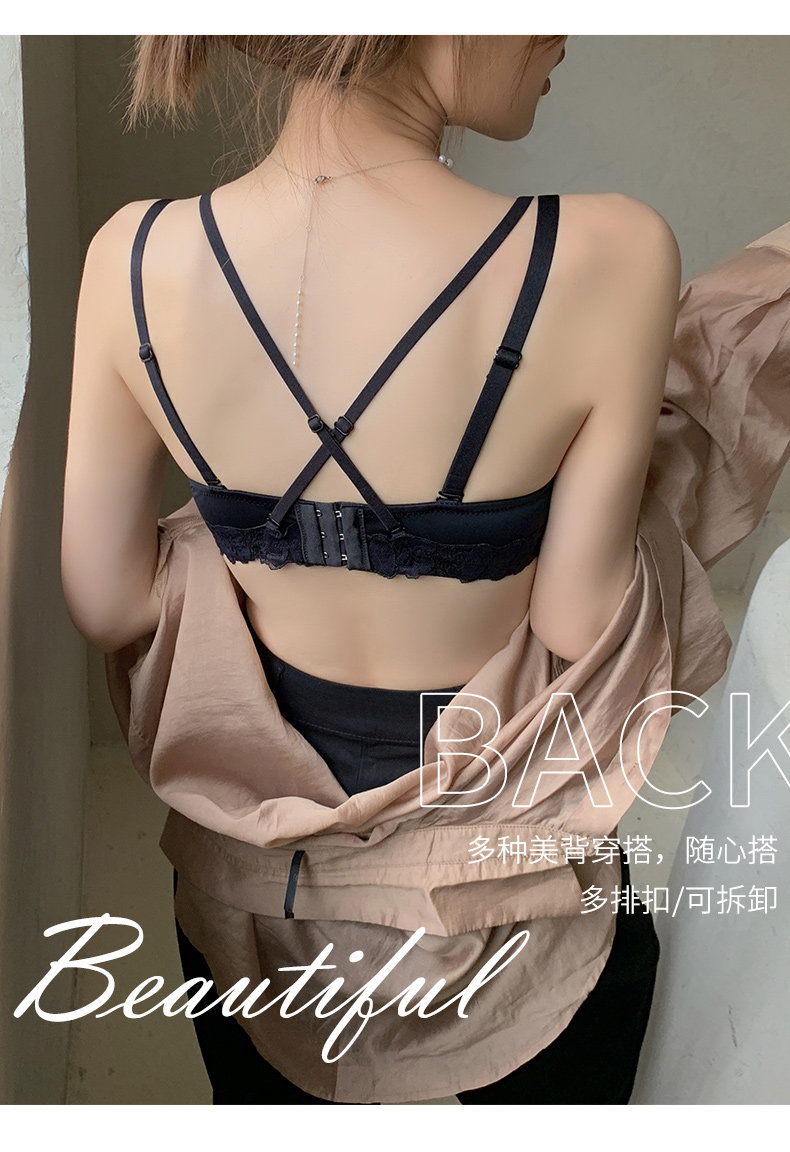 Нижнее белье, бюстгальтер пуш-ап, милый бюстгальтер без косточек, кружевной бюстгалтер, поддерживающий комплект, увеличенная толщина, красивая спина