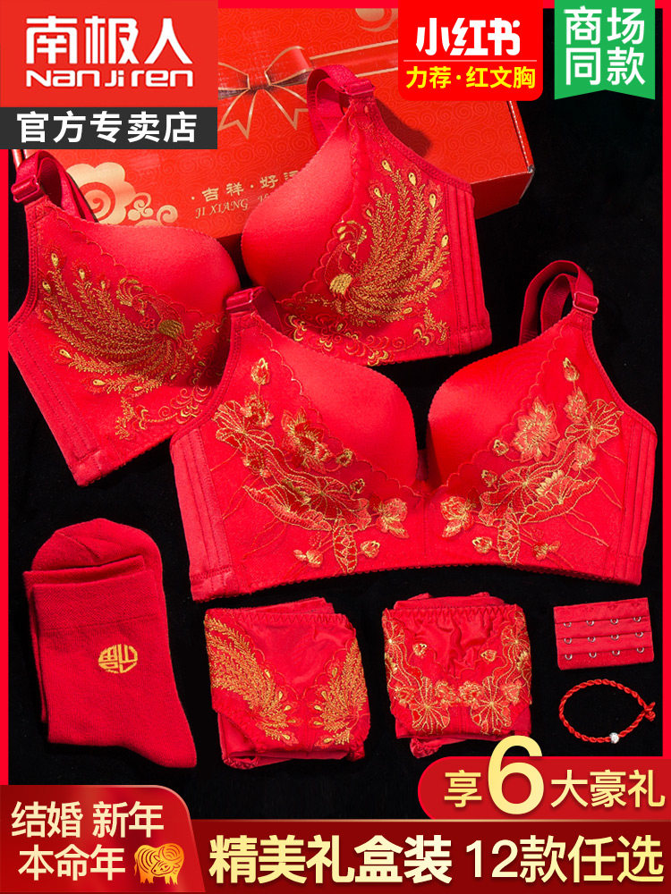 Красное нижнее белье, комплект, оберег на день рождения для невесты, поддерживающий бюстгальтер без косточек, тонкий бюстгальтер-топ, год кролика, увеличенная толщина, большой размер