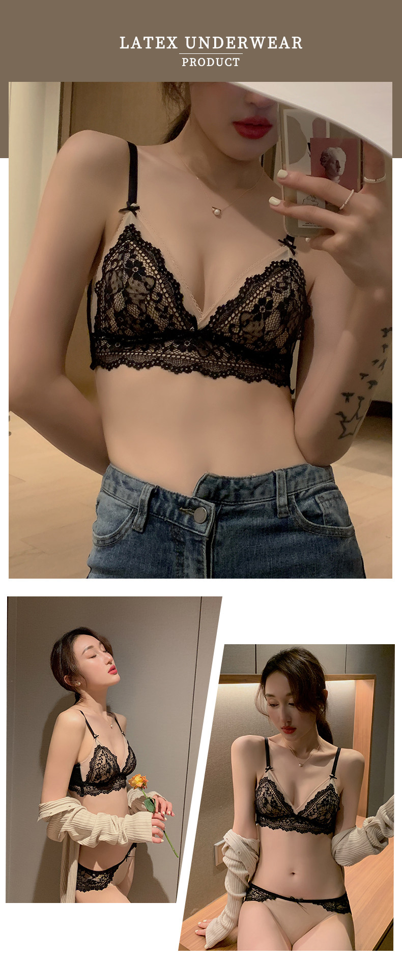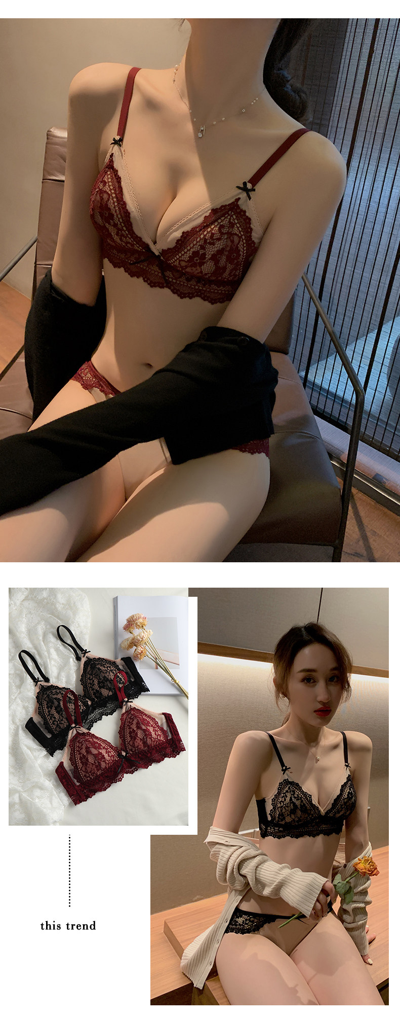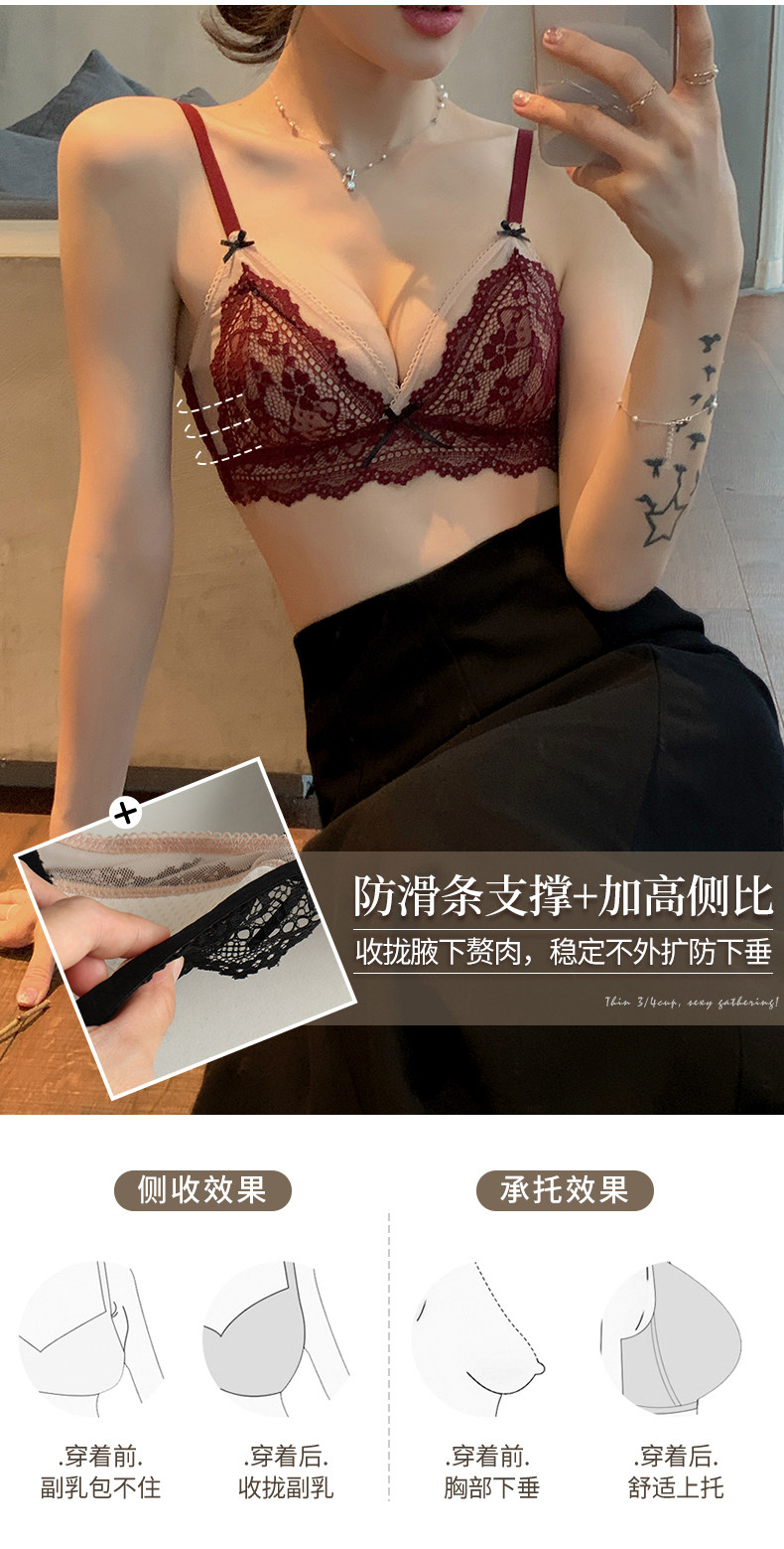 Нижнее белье, ультратонкий бюстгальтер без косточек, тонкий бюстгалтер, поддерживающий сексуальный комплект, французский стиль