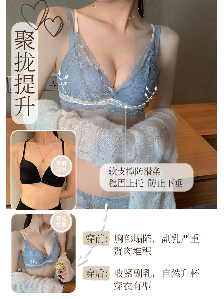 Нижнее белье, бюстгальтер пуш-ап, бюстгалтер, поддерживающий бюстгальтер без косточек, тонкий комплект, красивая спина