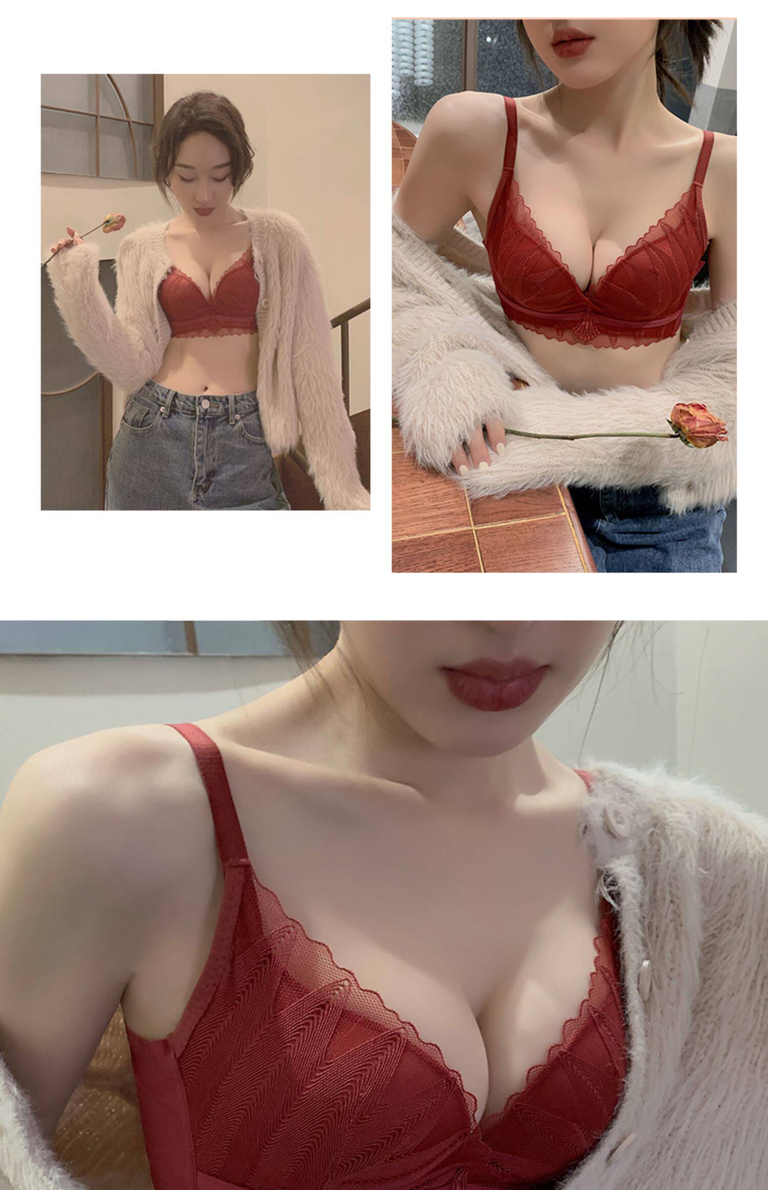 Красное нижнее белье, кружевной комплект, поддерживающий бюстгалтер