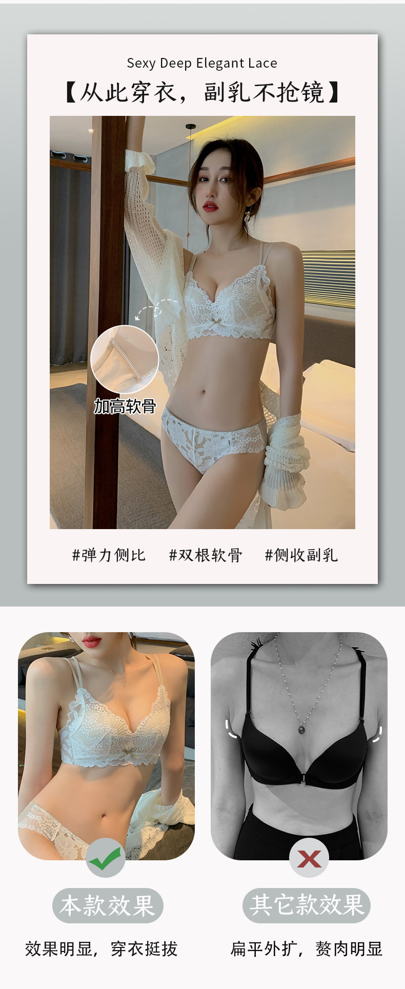 Поддерживающее нижнее белье, кружевной бюстгалтер, бюстгальтер без косточек, комплект, красивая спина