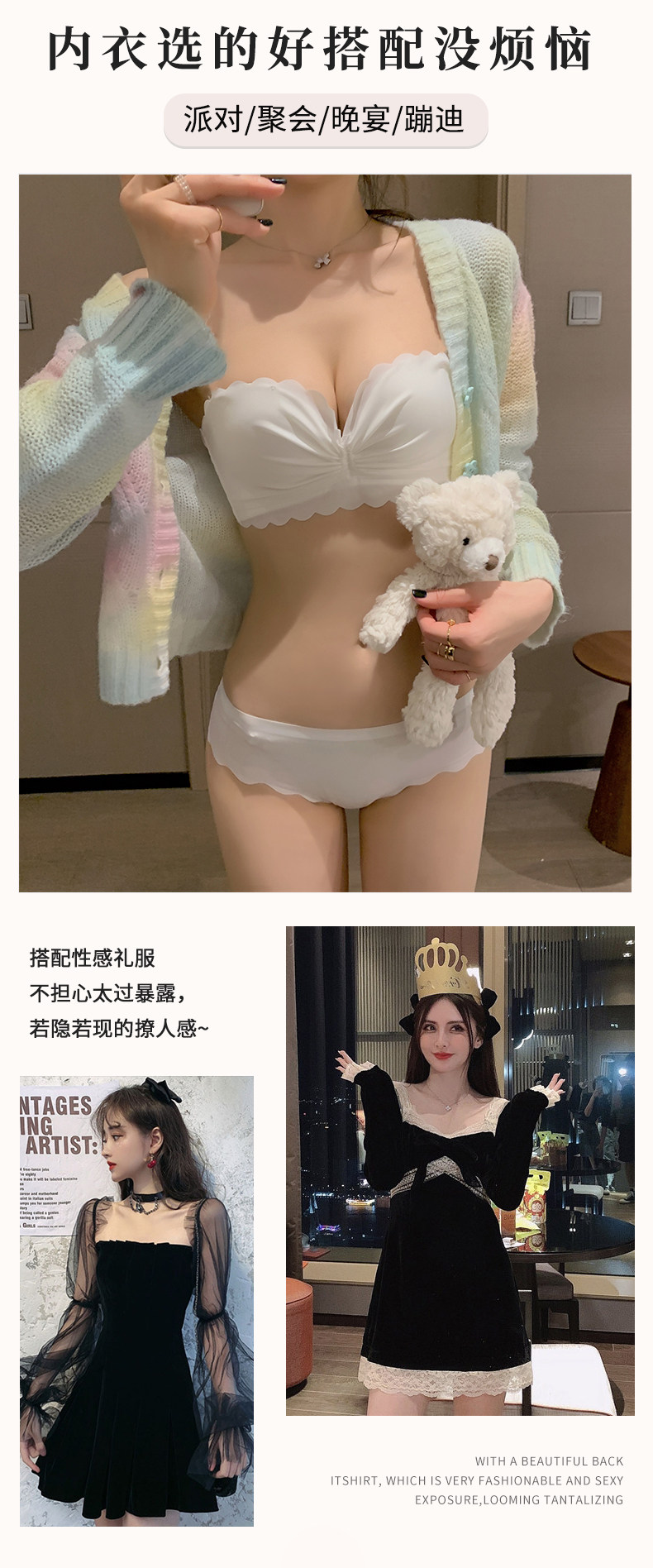 Нижнее белье, бюстгальтер пуш-ап, поддерживающие бретели, бюстгальтер-топ, комплект