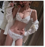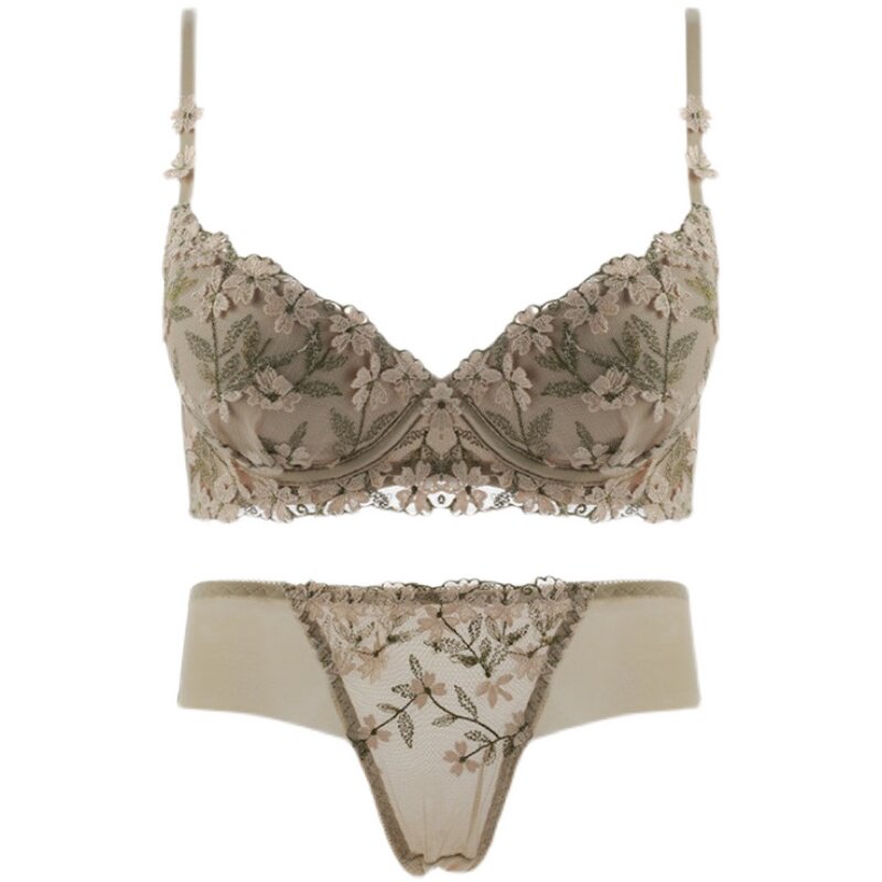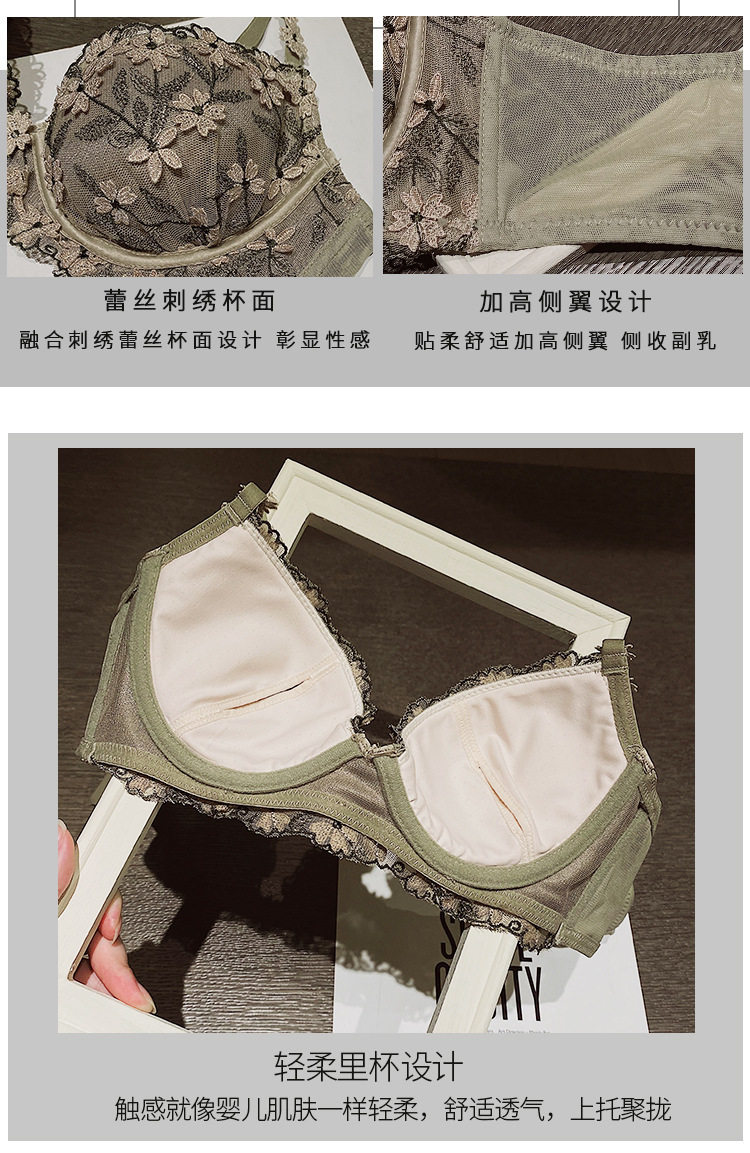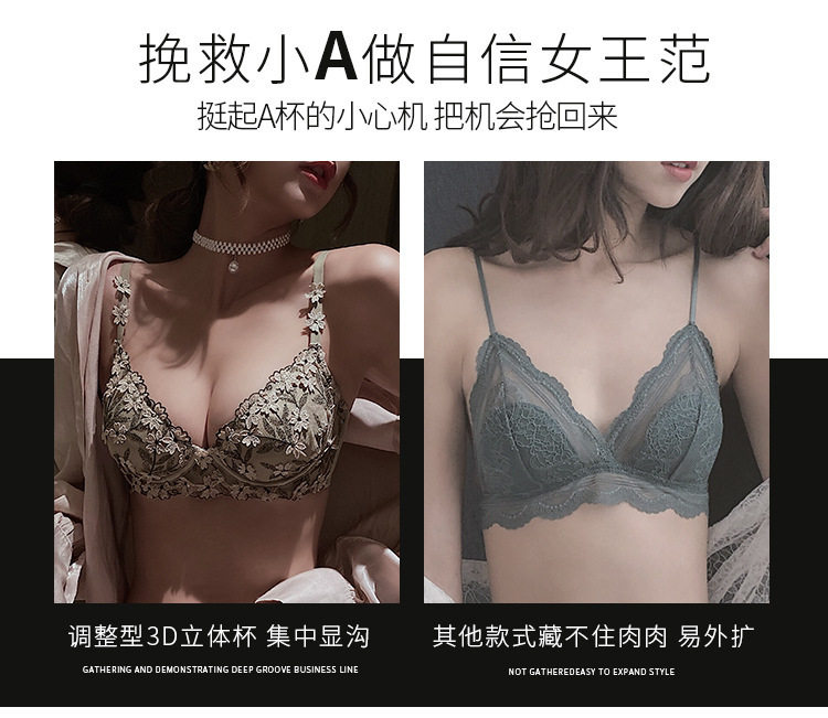 Сексуальное кружевное нижнее белье, кружевной бюстгальтер пуш-ап со стальными косточками, комплект, с вышивкой, для маленькой груди, увеличенная толщина