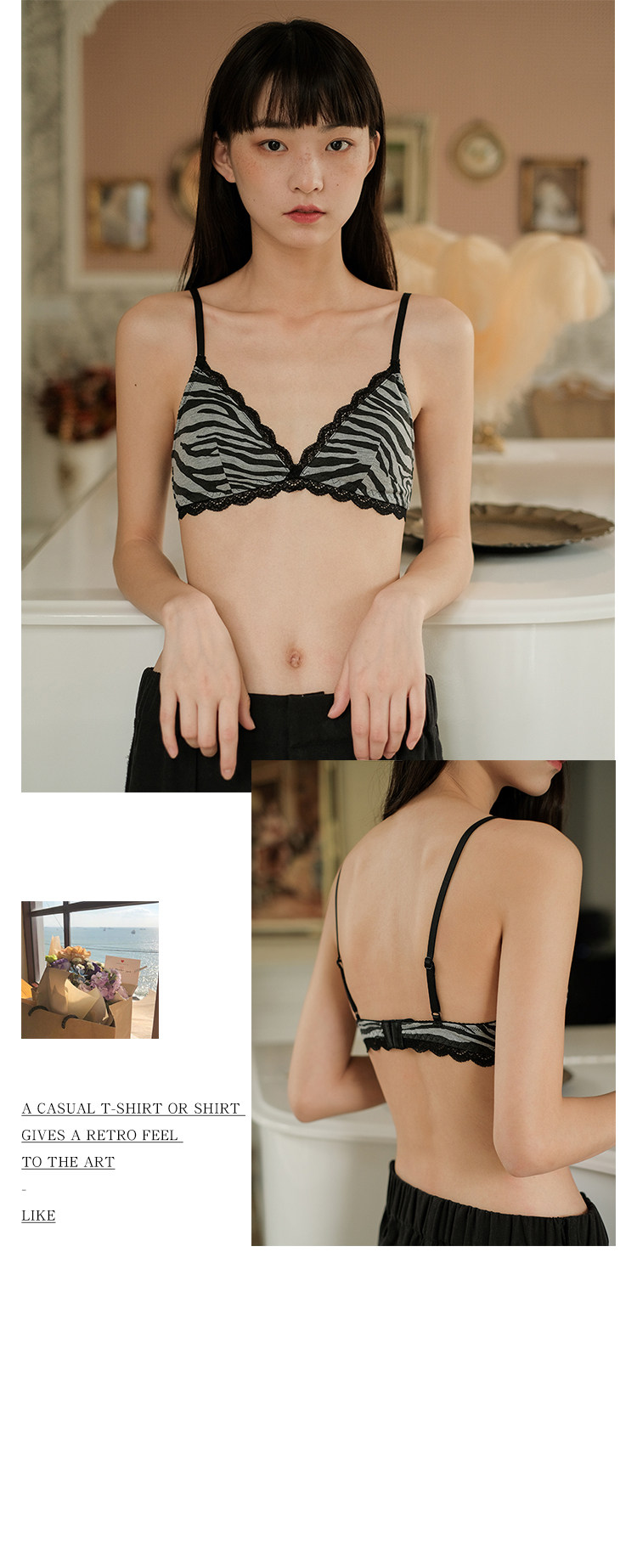 Бюстгалтер, кружевная зебра, тонкий бюстгальтер без косточек, нижнее белье, красивая спина