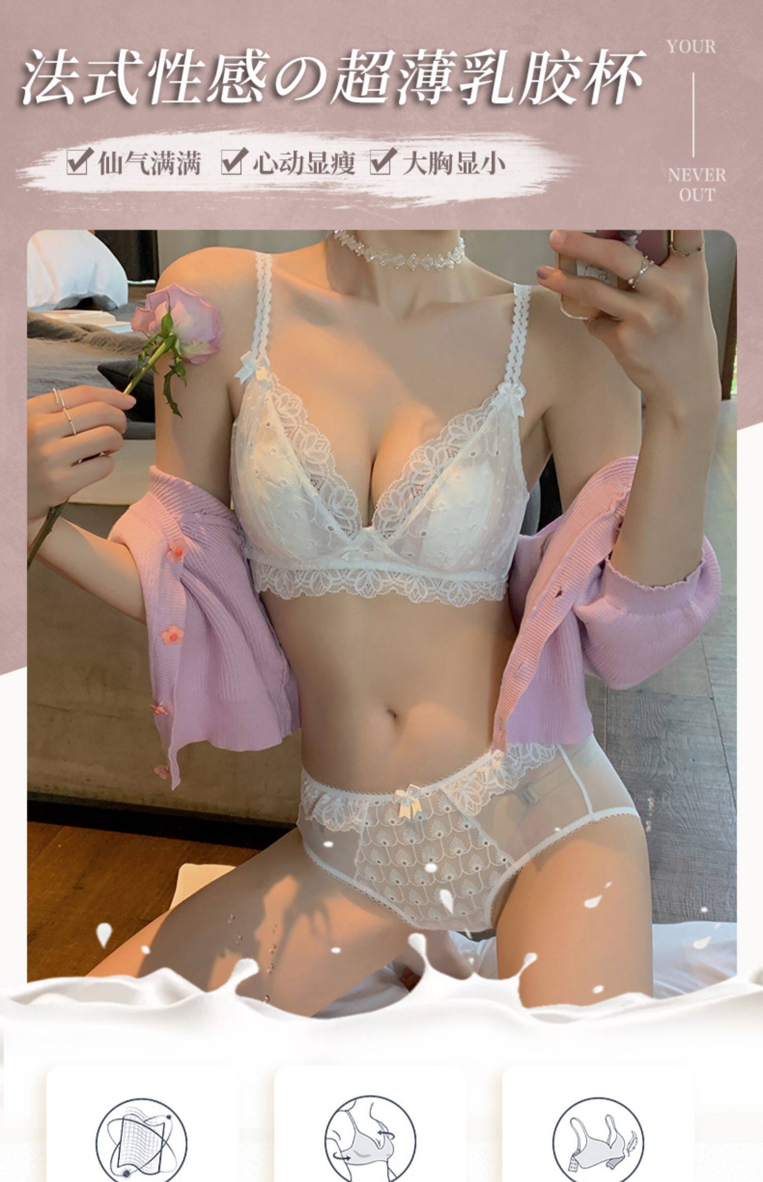 Тонкое нижнее белье, сексуальный бюстгальтер пуш-ап, латексный бюстгальтер без косточек, бюстгальтер-топ, комплект, французский стиль