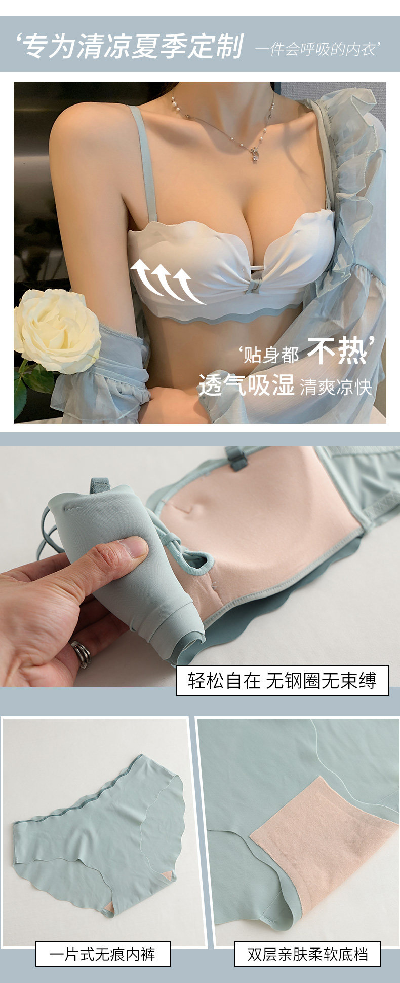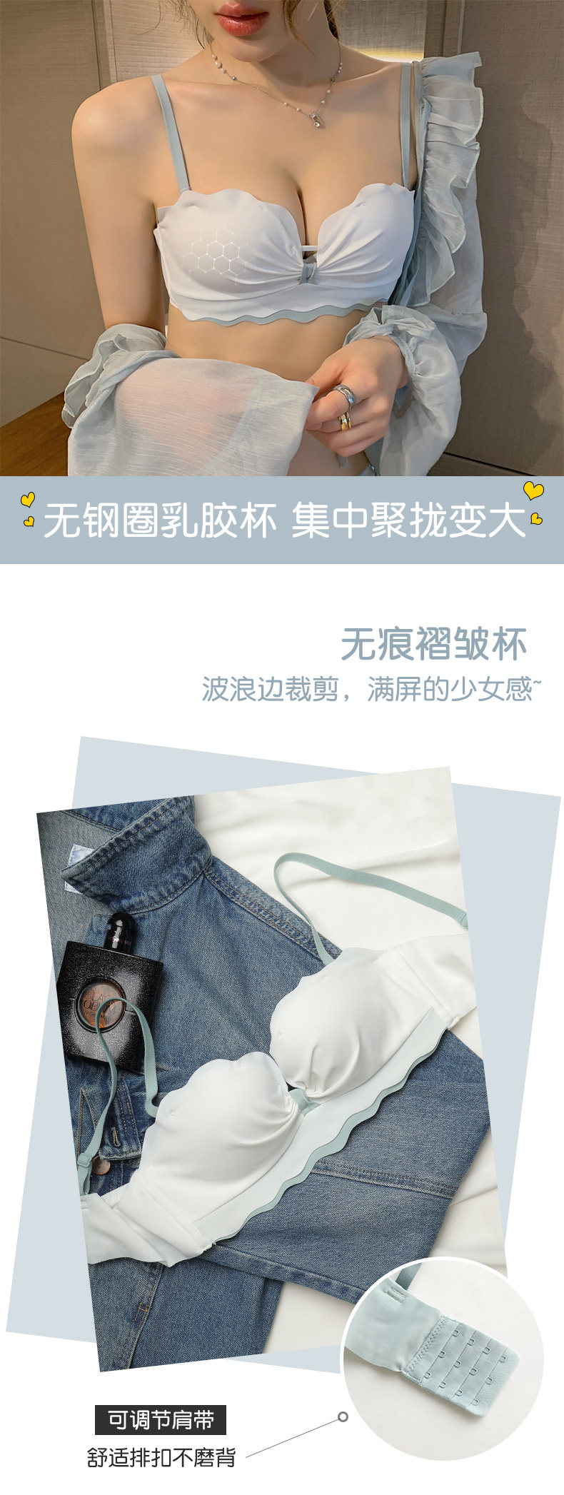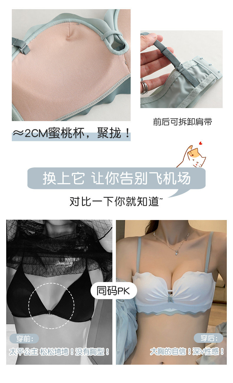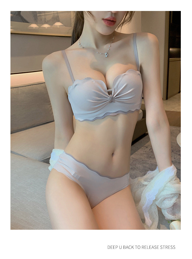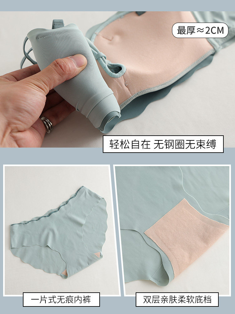 Тонкое нижнее белье, демисезонный поддерживающий бюстгальтер пуш-ап, латексный нескользящий бюстгалтер, комплект