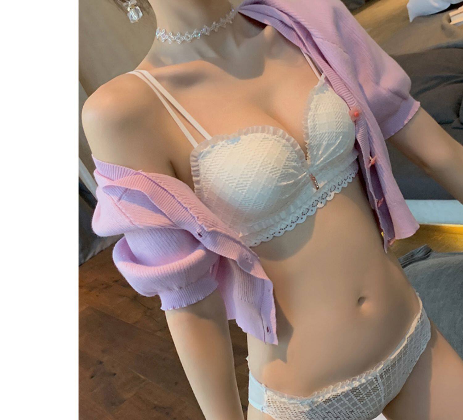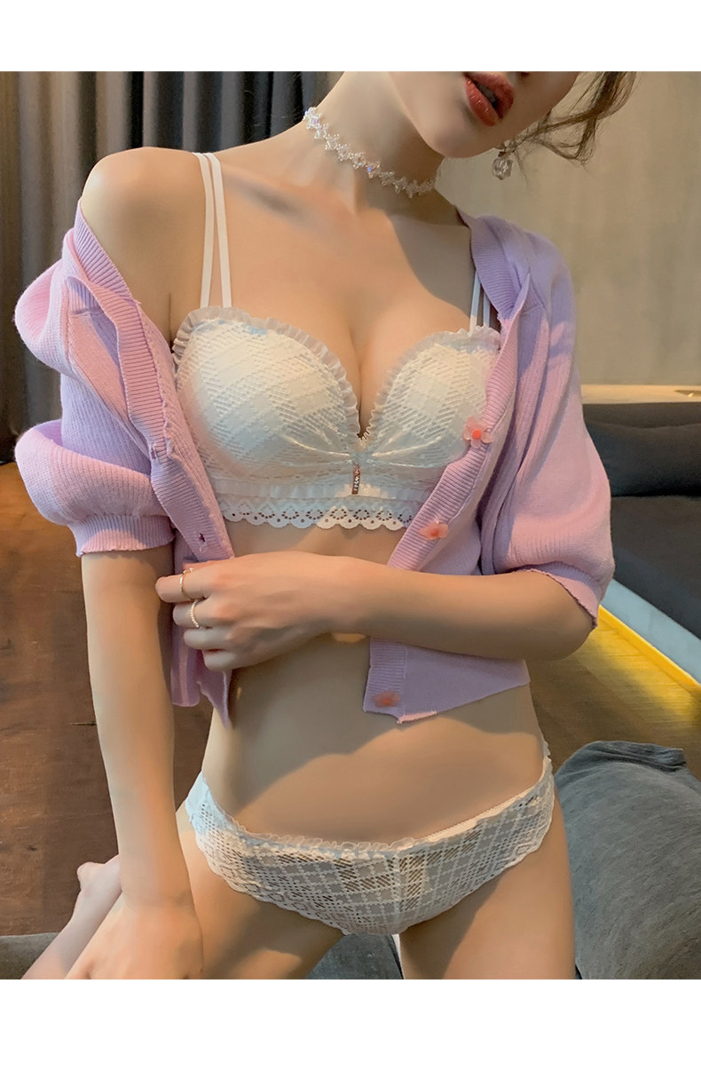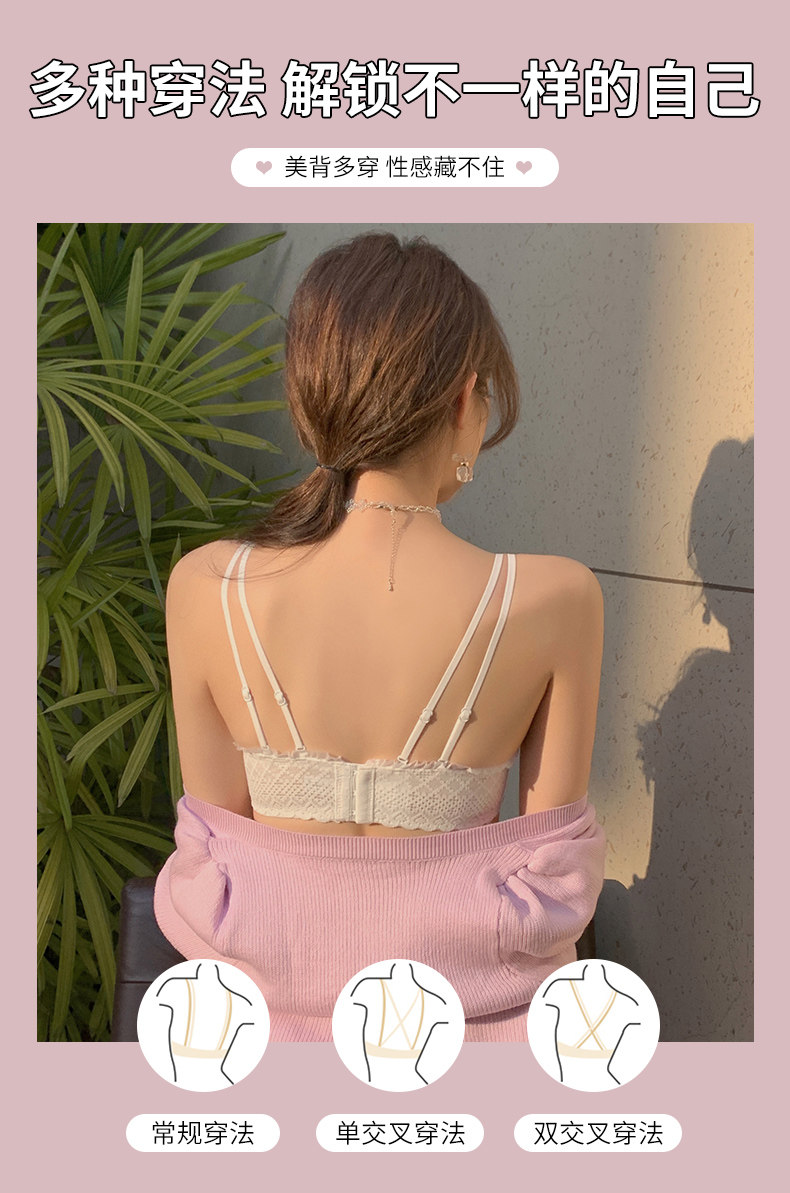 Нижнее белье, поддерживающий бюстгальтер пуш-ап, тонкий кружевной бюстгальтер-топ, комплект, красивая спина