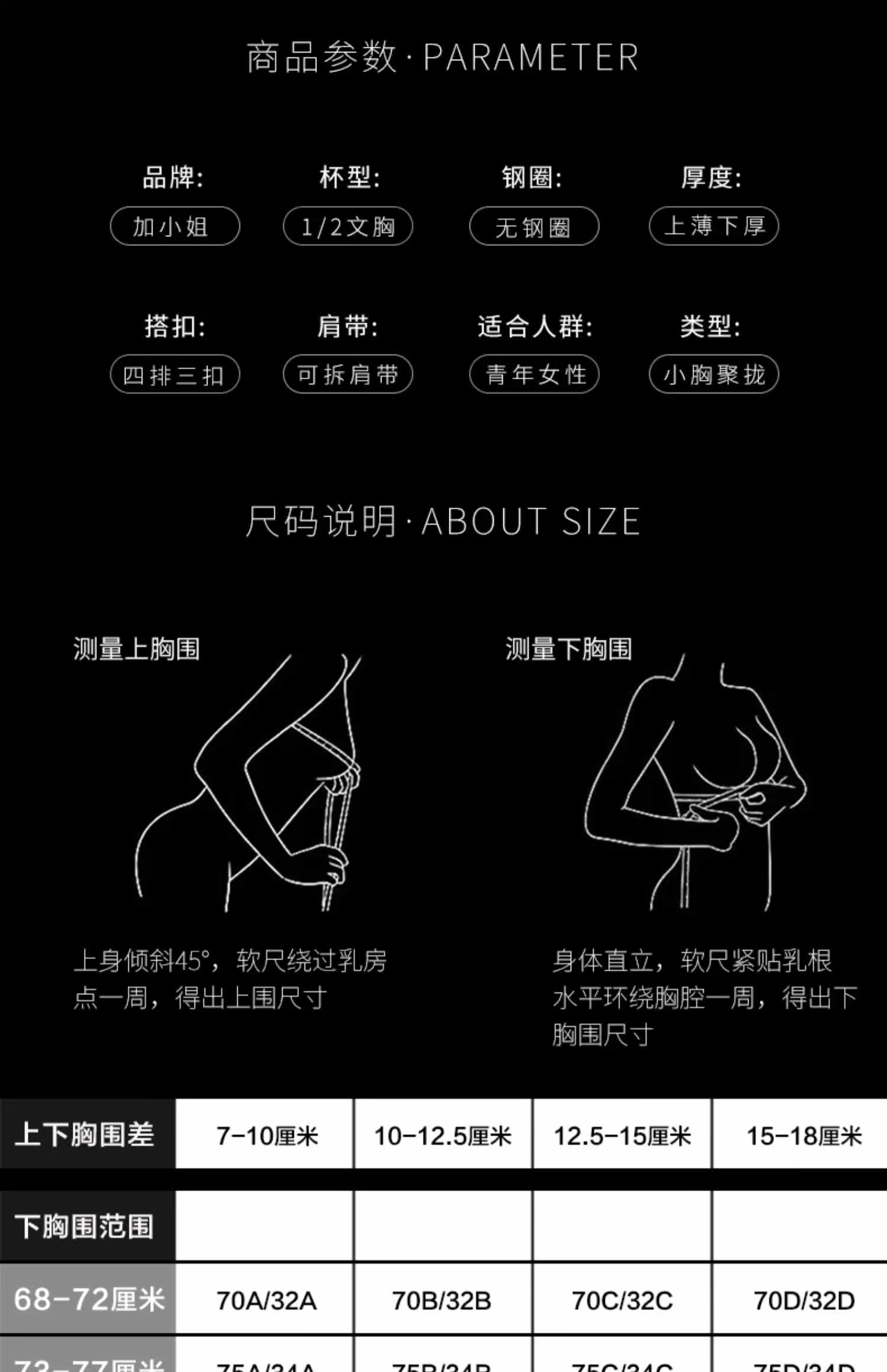 | Размер: | 32/70 (предложение 65C70AB), 34/75 (предложение 70c/75ab), 36/80 (предложение 75C/80AB), 38/85 (рекомендуется 80C/85AB) |
