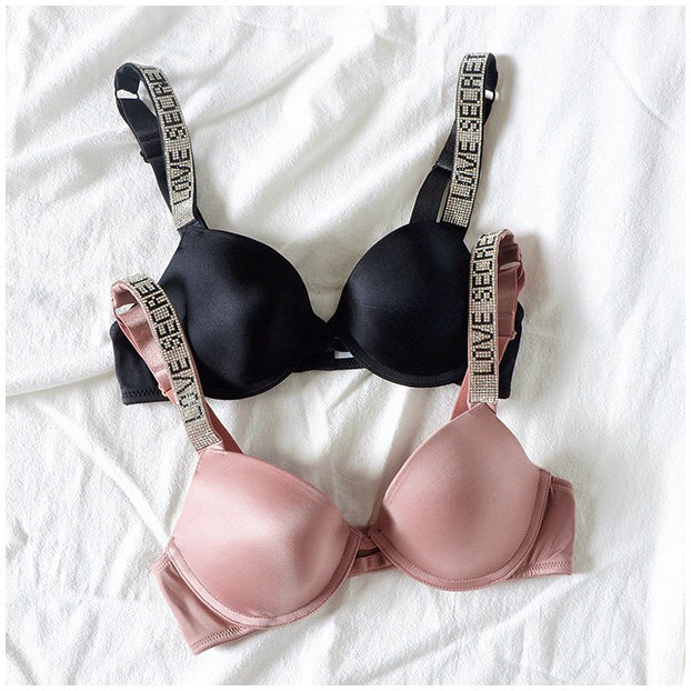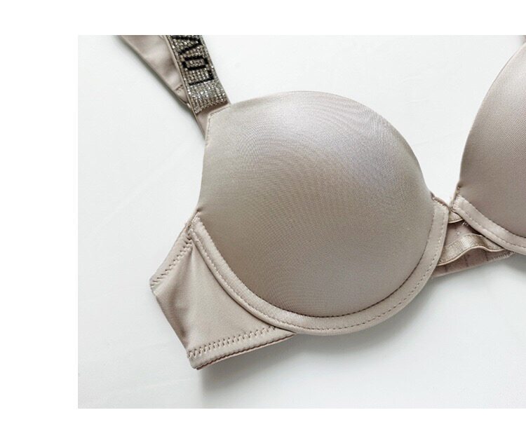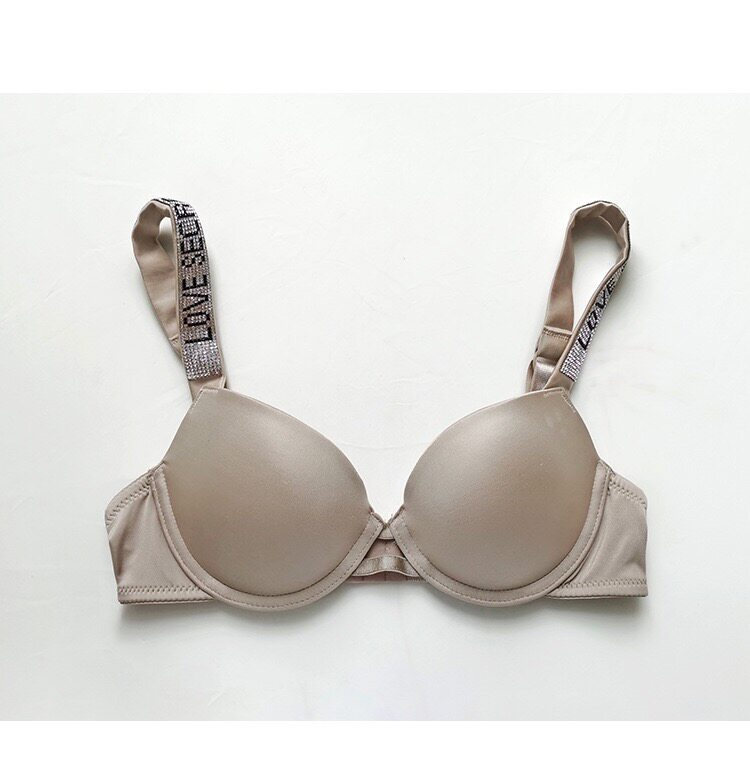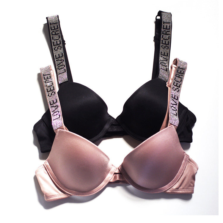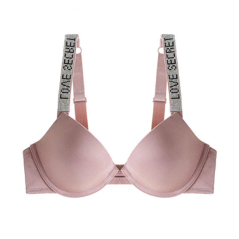 Поролоновые бретели с буквами, бюстгальтер пуш-ап, глянцевый розовый бюстгалтер, легкий роскошный стиль