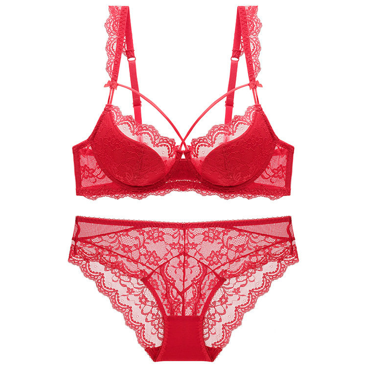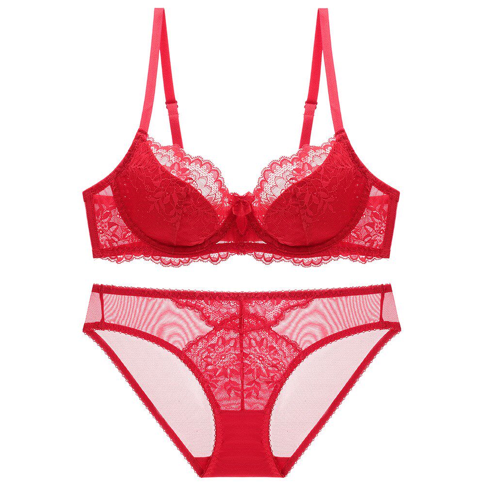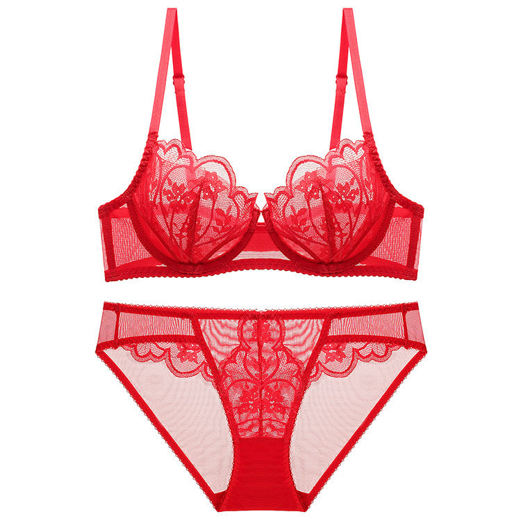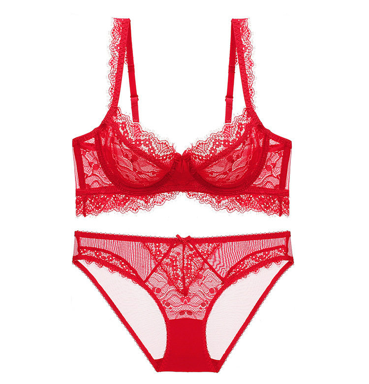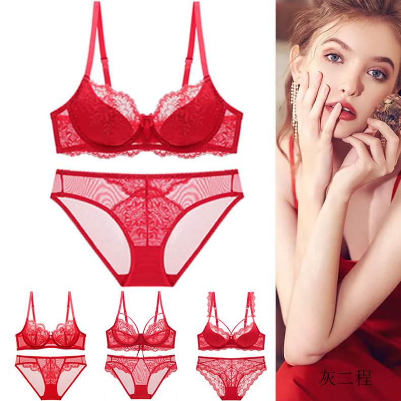 Красное нижнее белье для невесты, тонкий сексуальный ультратонкий бюстгалтер, летний комплект
