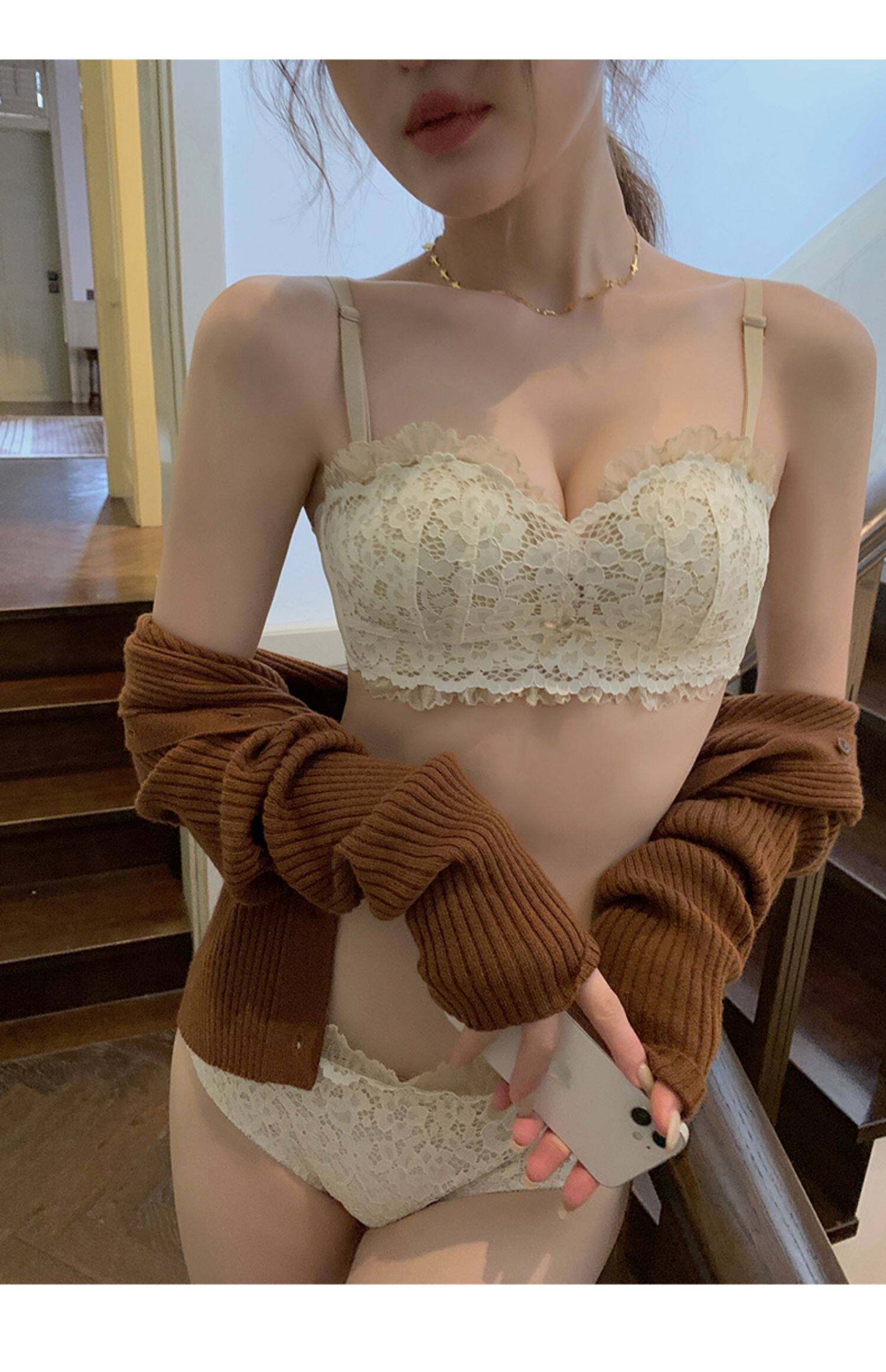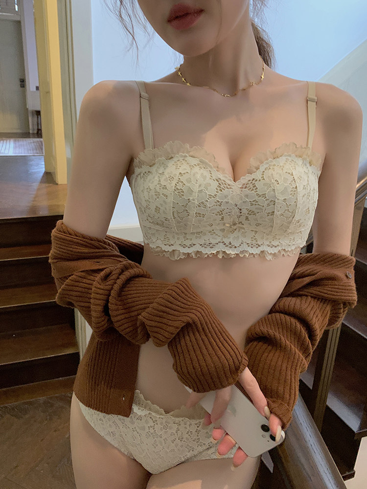 Бюстгальтер пуш-ап, тонкое нижнее белье, бюстгальтер без косточек, поддерживающий бюстгалтер, кружевной комплект, красивая спина