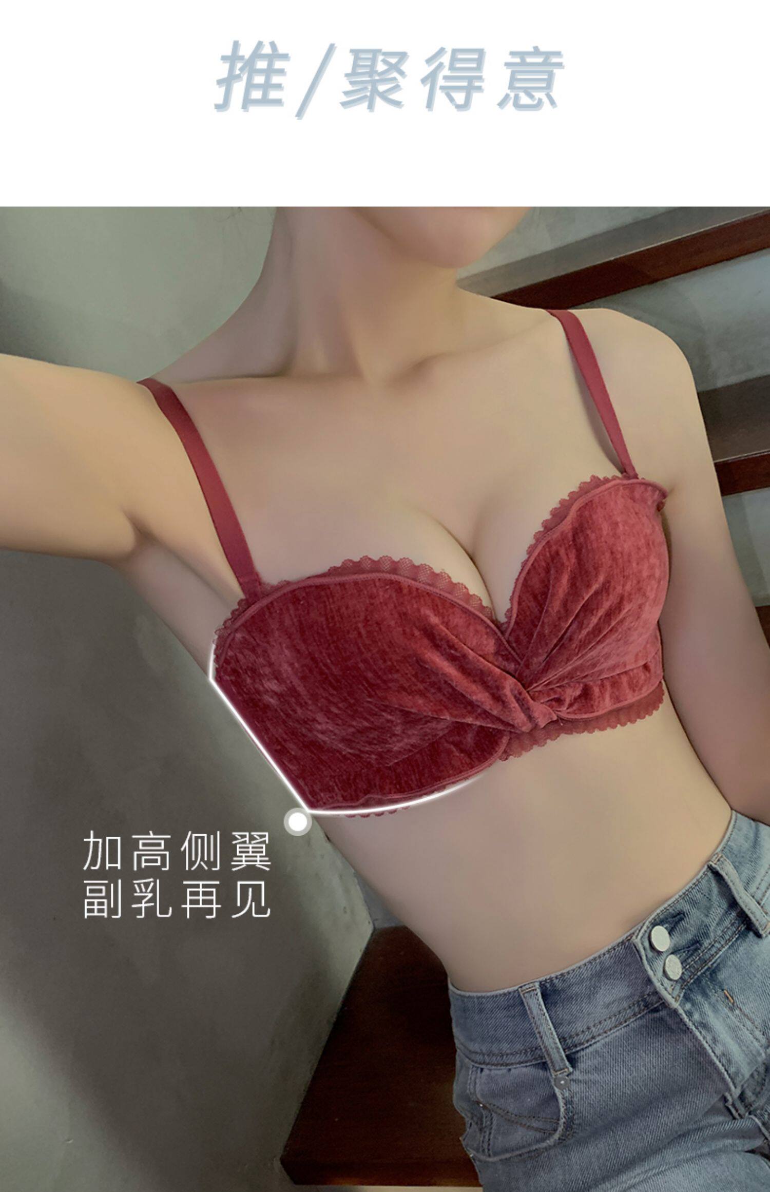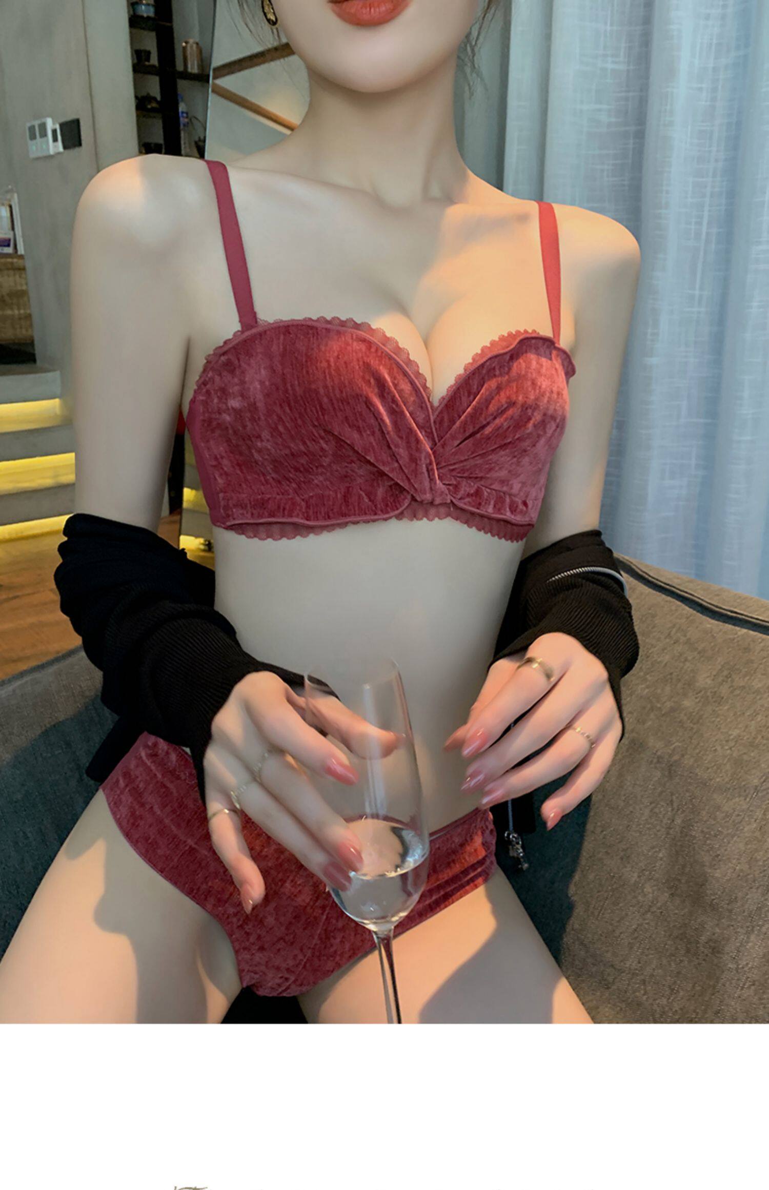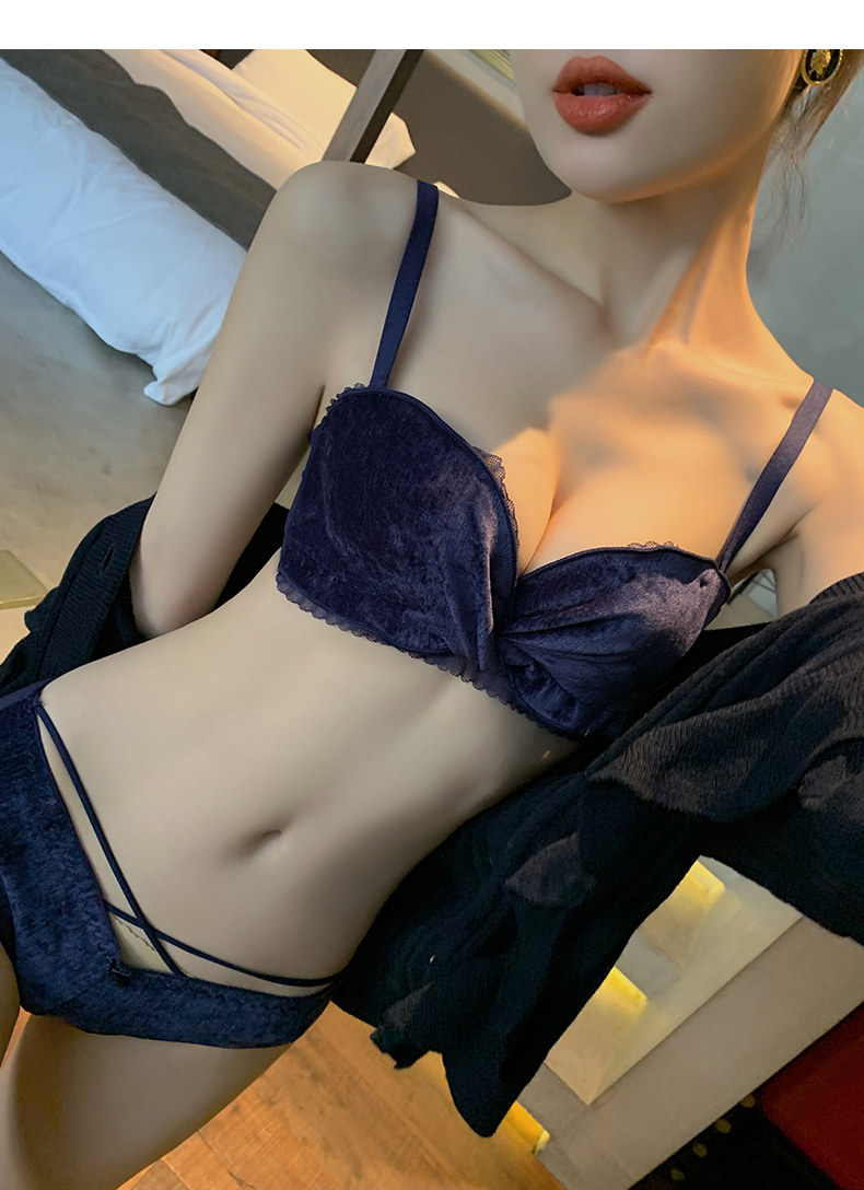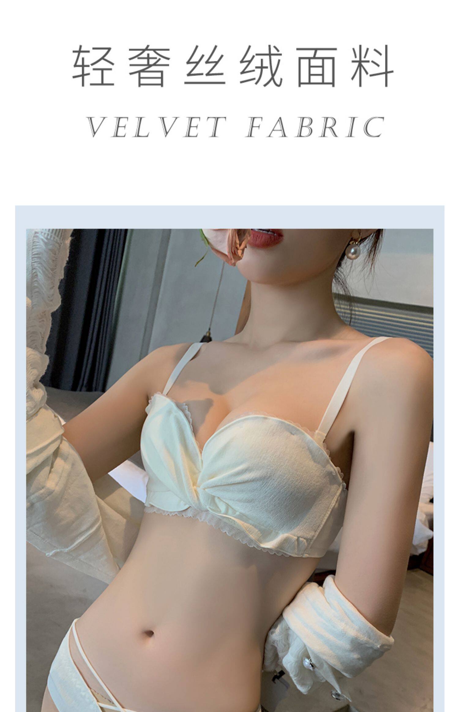 Бархатное нижнее белье, поддерживающий бюстгальтер без косточек, бюстгалтер, сексуальный комплект