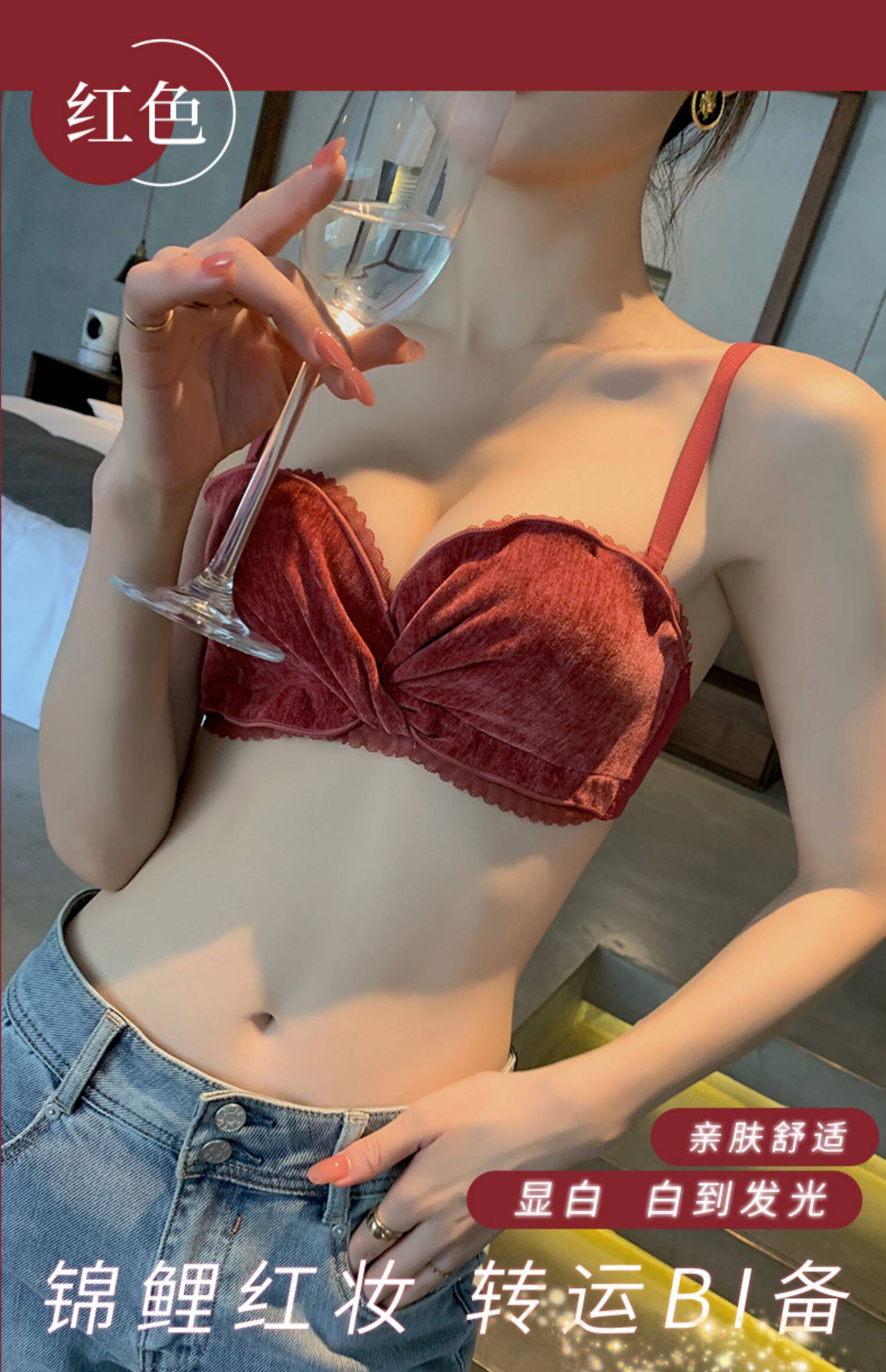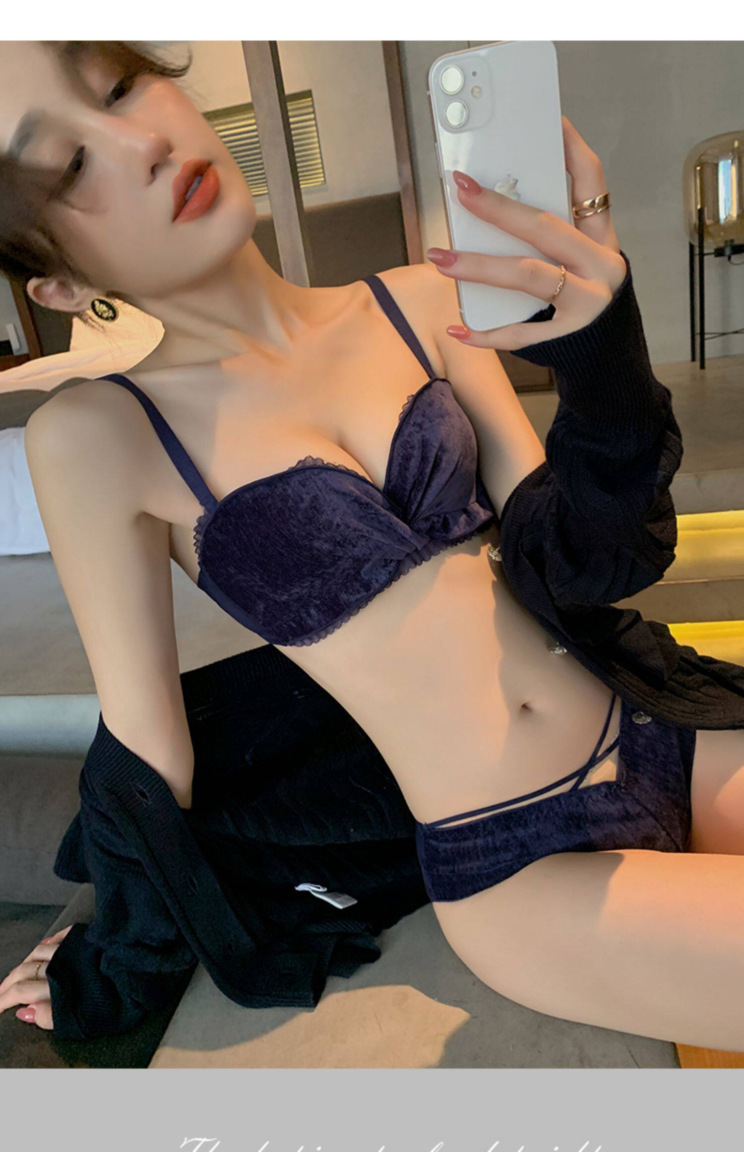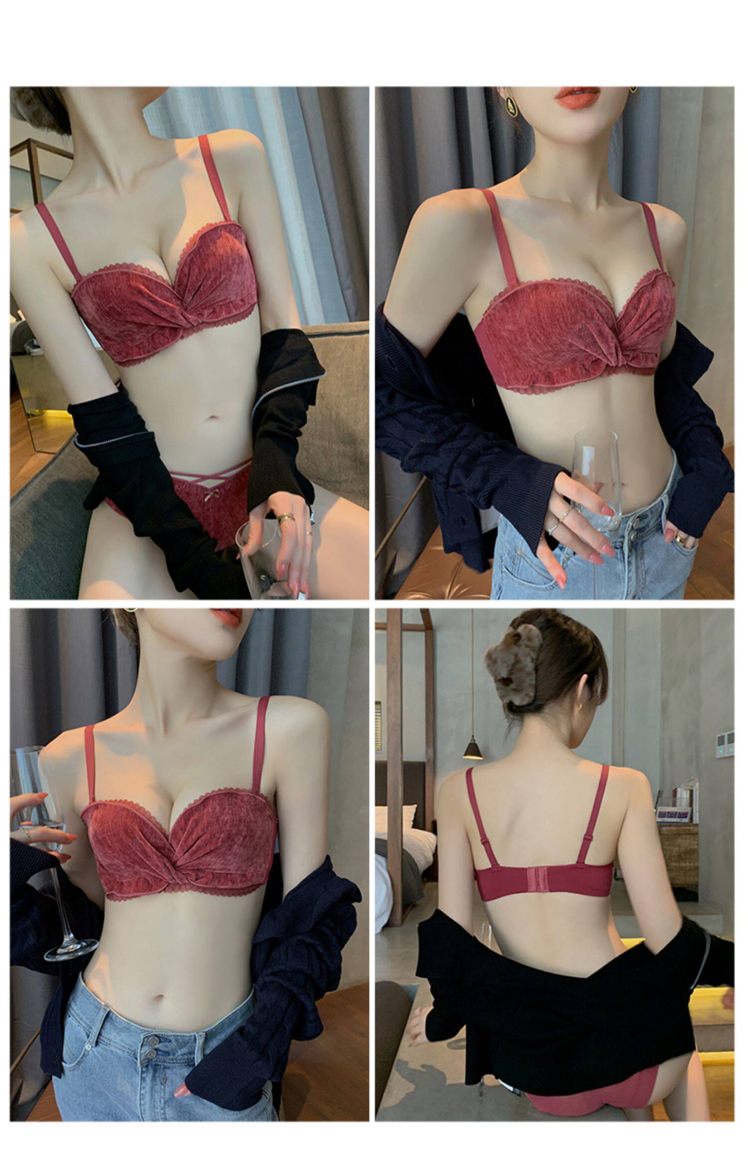 Бархатное нижнее белье, поддерживающий бюстгальтер без косточек, бюстгалтер, сексуальный комплект