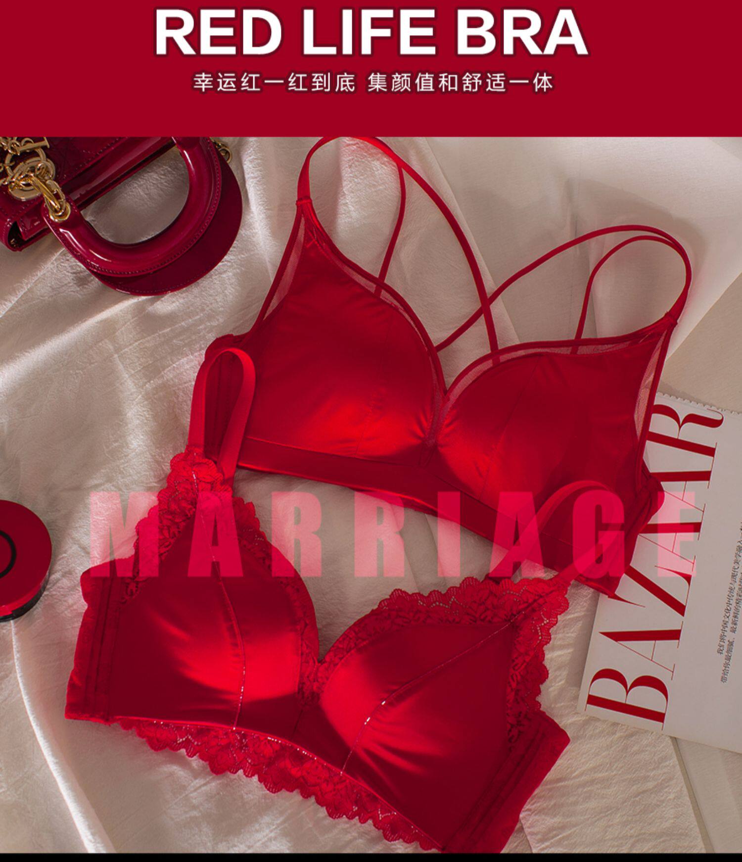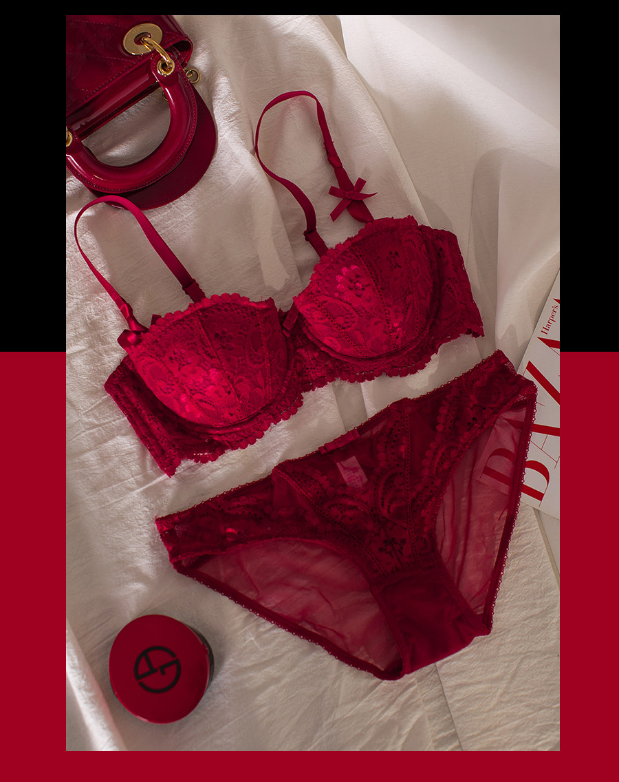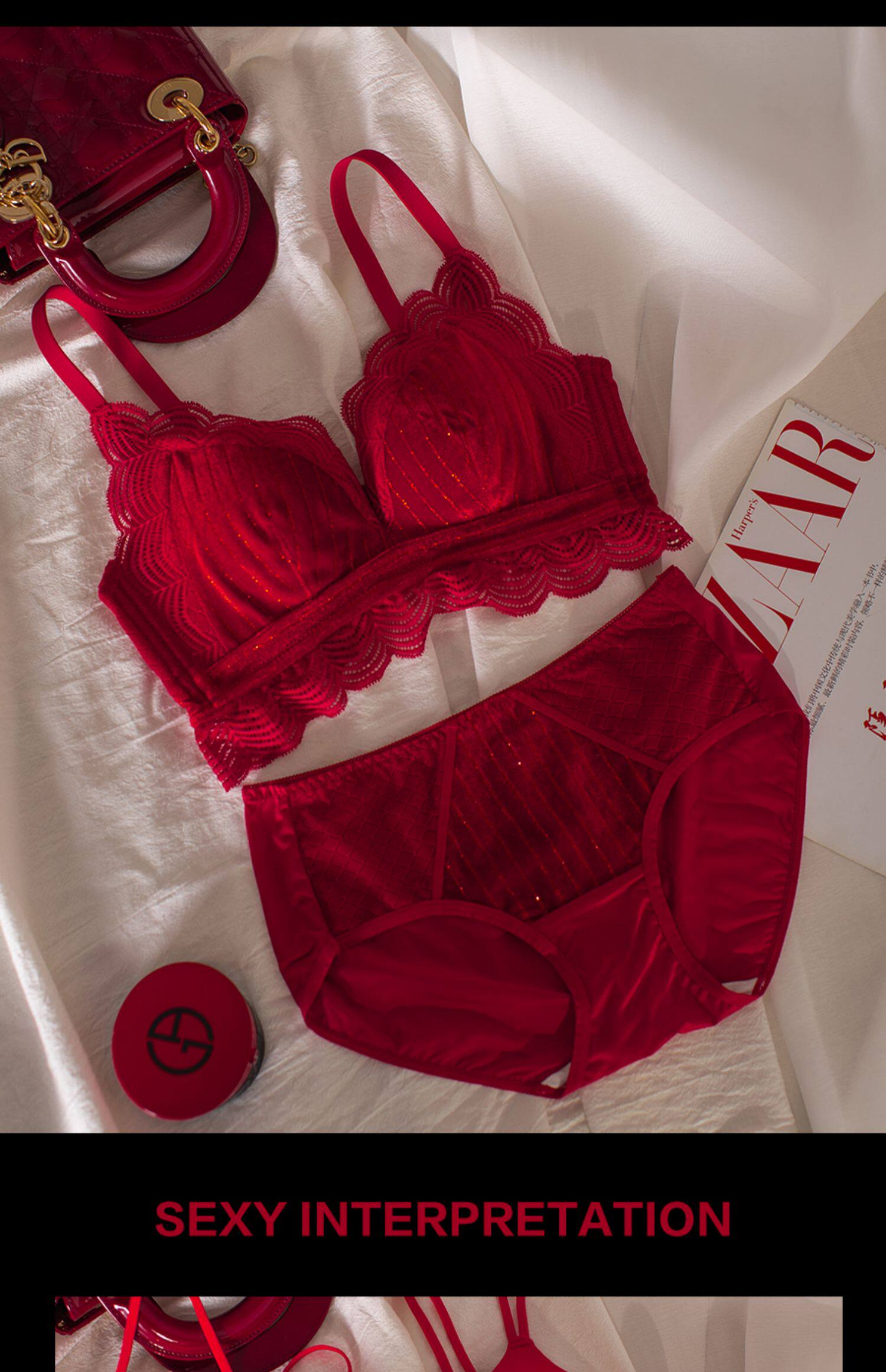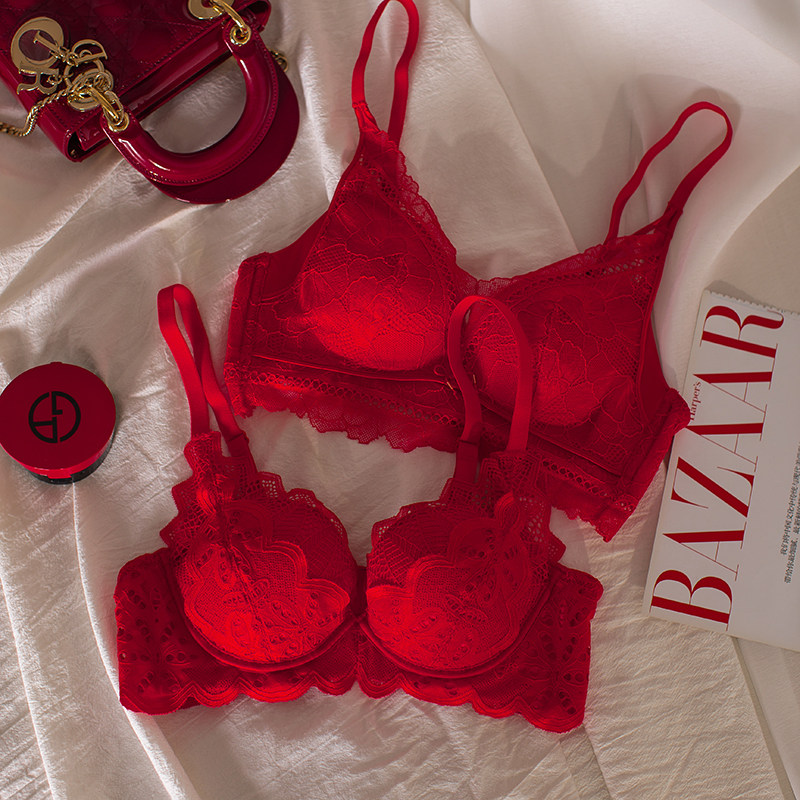 Красное нижнее белье, комплект, оберег на день рождения, кружевной бюстгальтер пуш-ап для невесты, бюстгальтер без косточек
