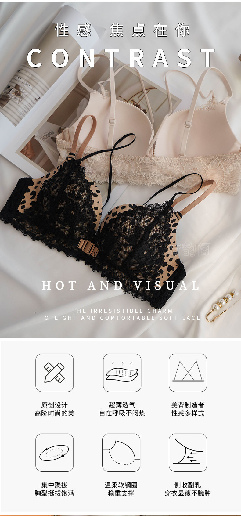 Тонкое нижнее белье, сексуальный бюстгалтер, кружевной бюстгальтер без косточек, комплект, красивая спина