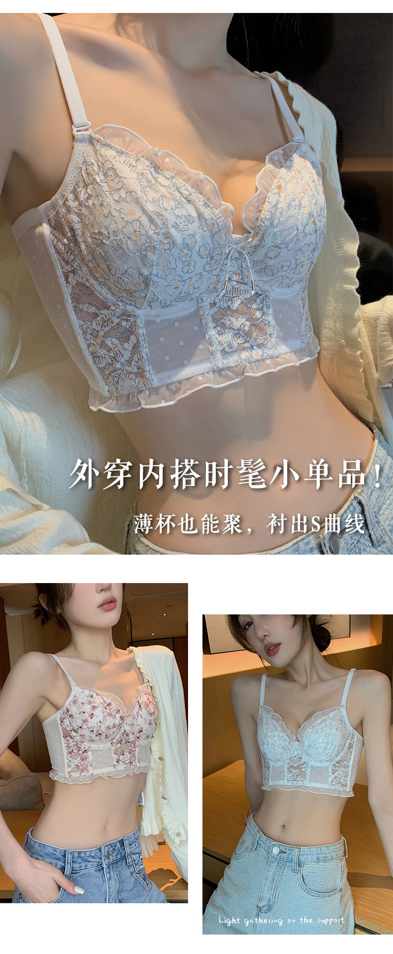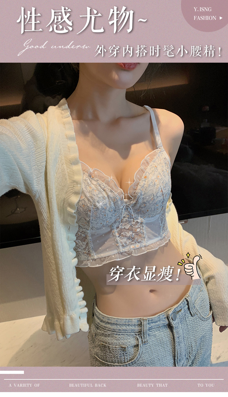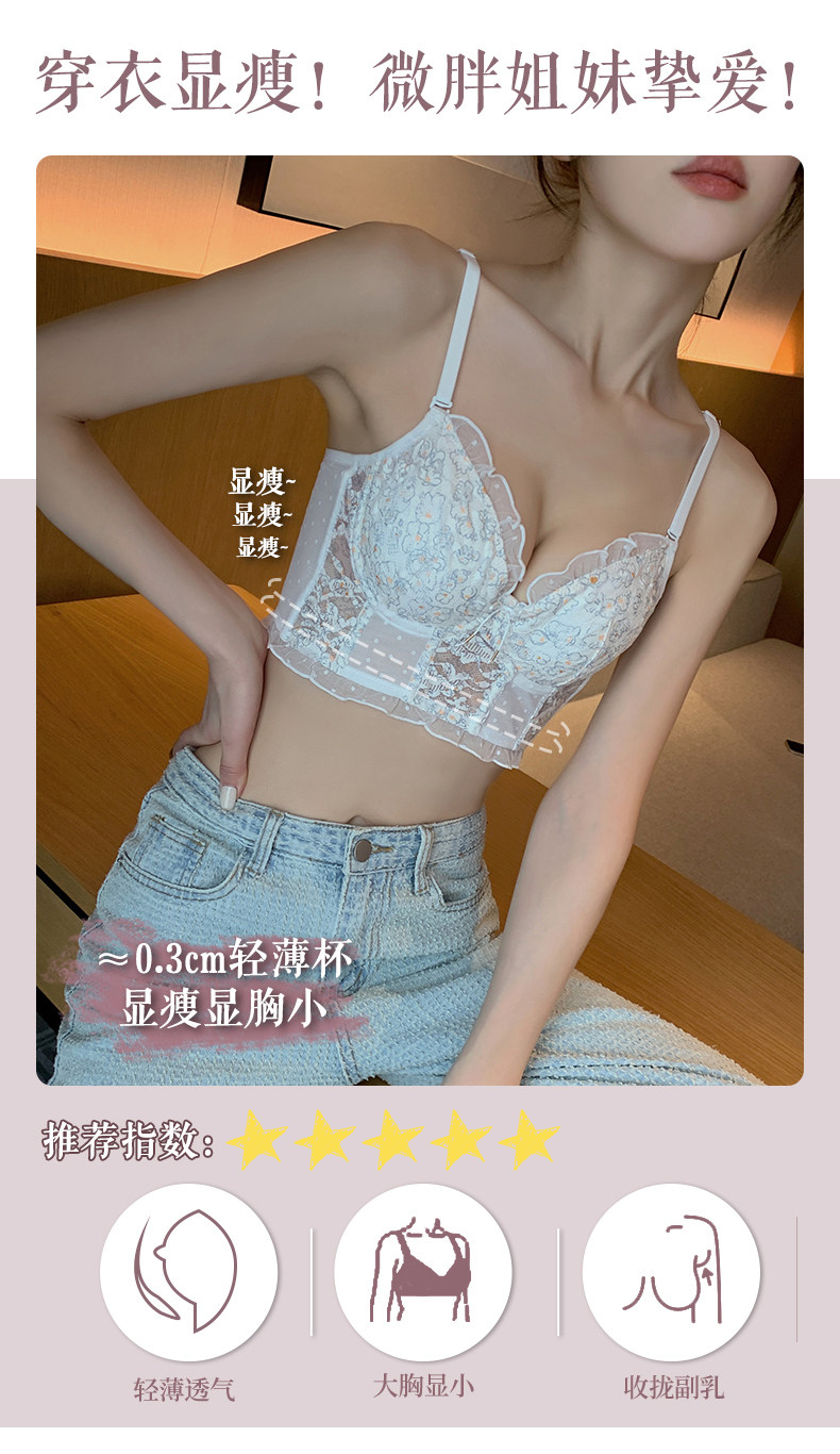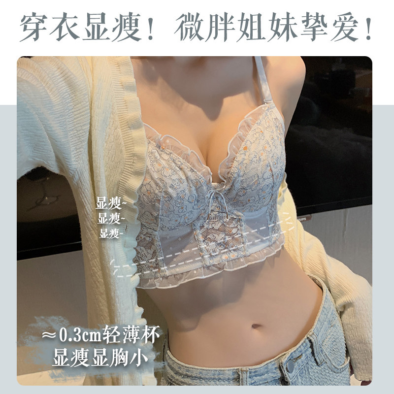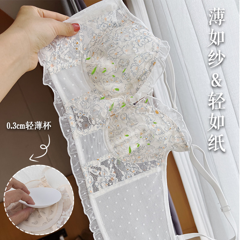 Тонкое нижнее белье, кружевной бюстгалтер со стальными косточками, демисезонный ультратонкий подростковый бюстгальтер, комплект, французский стиль