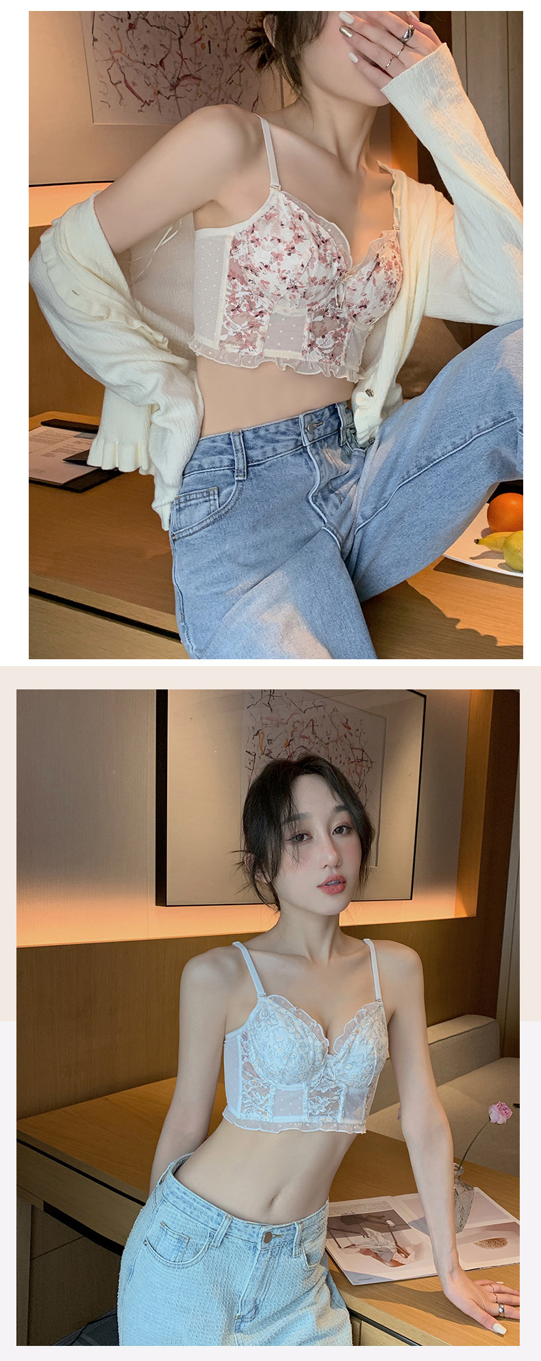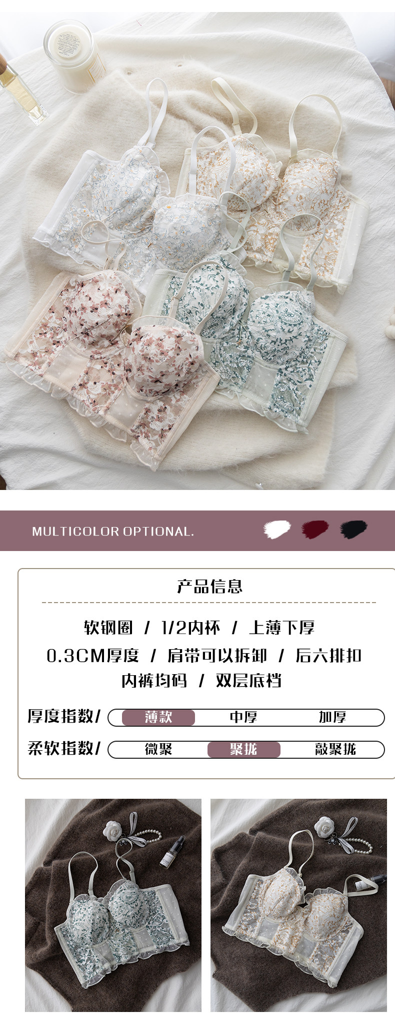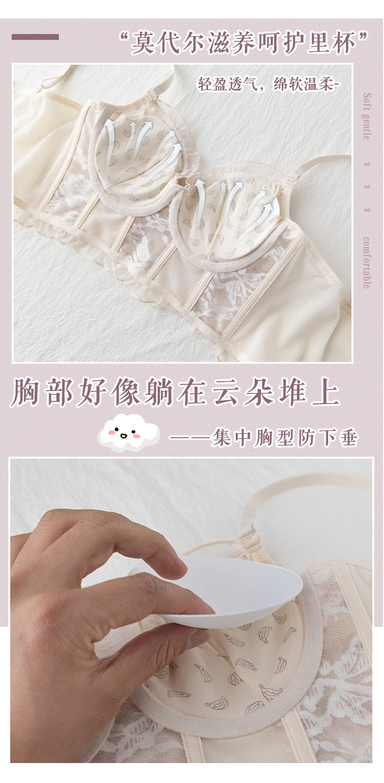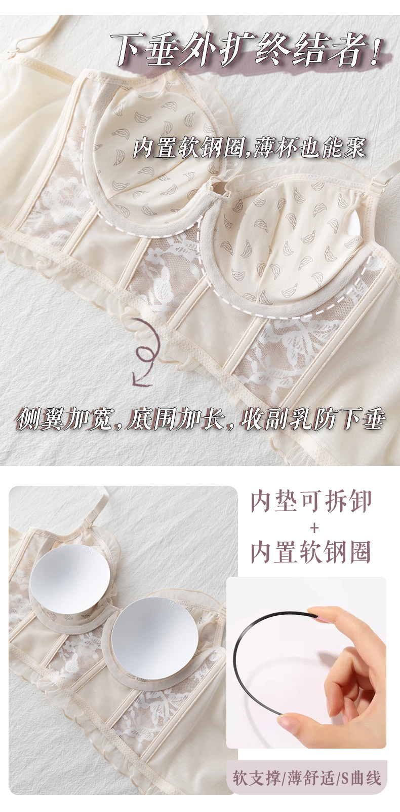 Тонкое нижнее белье, кружевной бюстгалтер со стальными косточками, демисезонный ультратонкий подростковый бюстгальтер, комплект, французский стиль