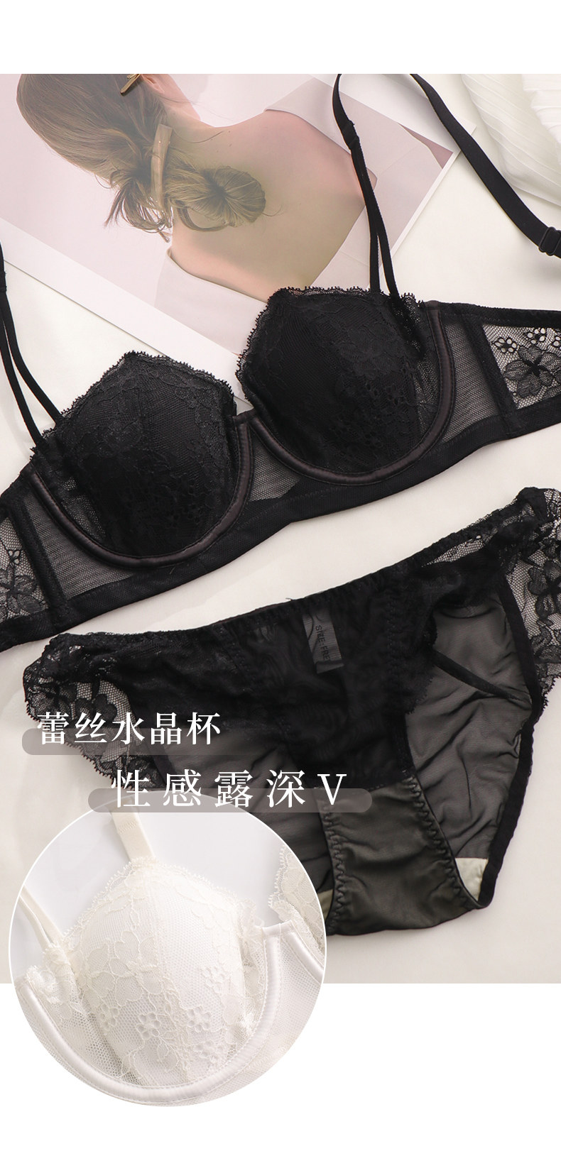 Ультратонкее нижнее белье, поддерживающий бюстгалтер со стальными косточками, сексуальный комплект, красивая спина