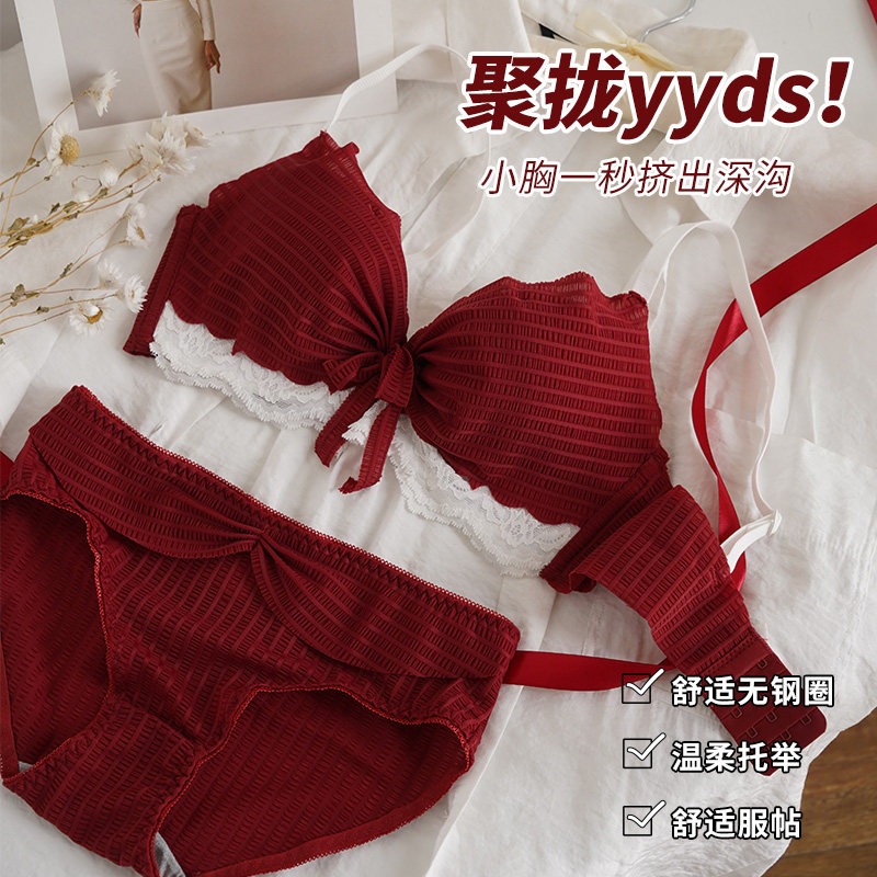 Красное нижнее белье, бюстгальтер пуш-ап для невесты, бюстгалтер, бюстгальтер без косточек, поддерживающий кружевной комплект