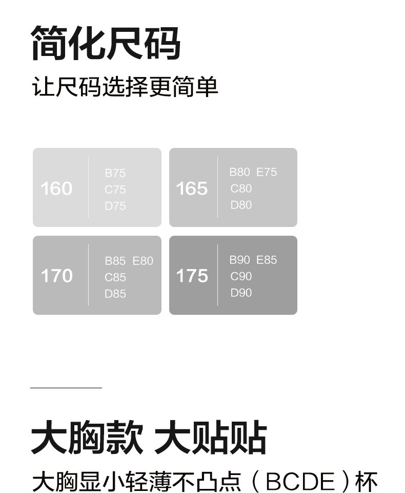 | Размер: | 160 (A70/A75/A80/B70/B75/C70/C75), 165 (A85/B80/C80/D75), 170 (B85/C85/D80), 175 (D85/E85), 160plus «Подходит для 75BCD», 165plus «Подходит для 80BCD 75E», 170plus «Подходит для 85BCD 80E», 175plus «Подходит для 90BCD 85E» |