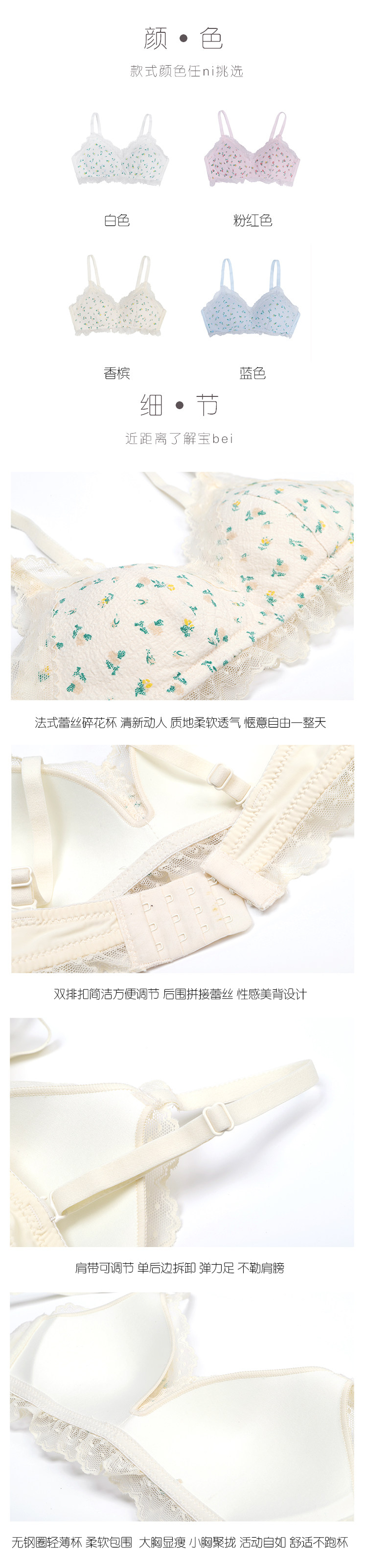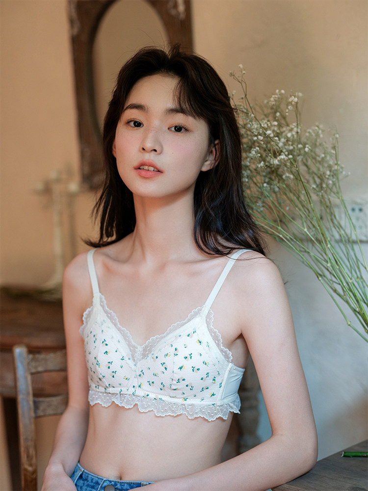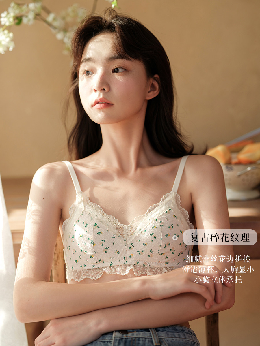 Милый бюстгалтер, нижнее белье, поддерживающий бюстгальтер пуш-ап, комфортный дышащий бюстгальтер без косточек, цветочный принт