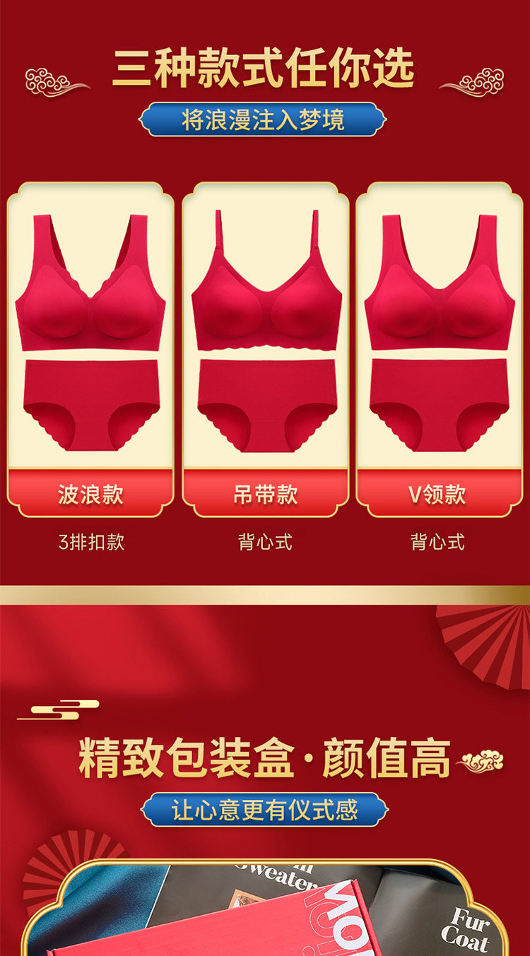 Оберег на день рождения, нижнее белье, красный комплект, бюстгальтер пуш-ап для невесты, бюстгальтер без косточек, подарочная коробка, год кролика