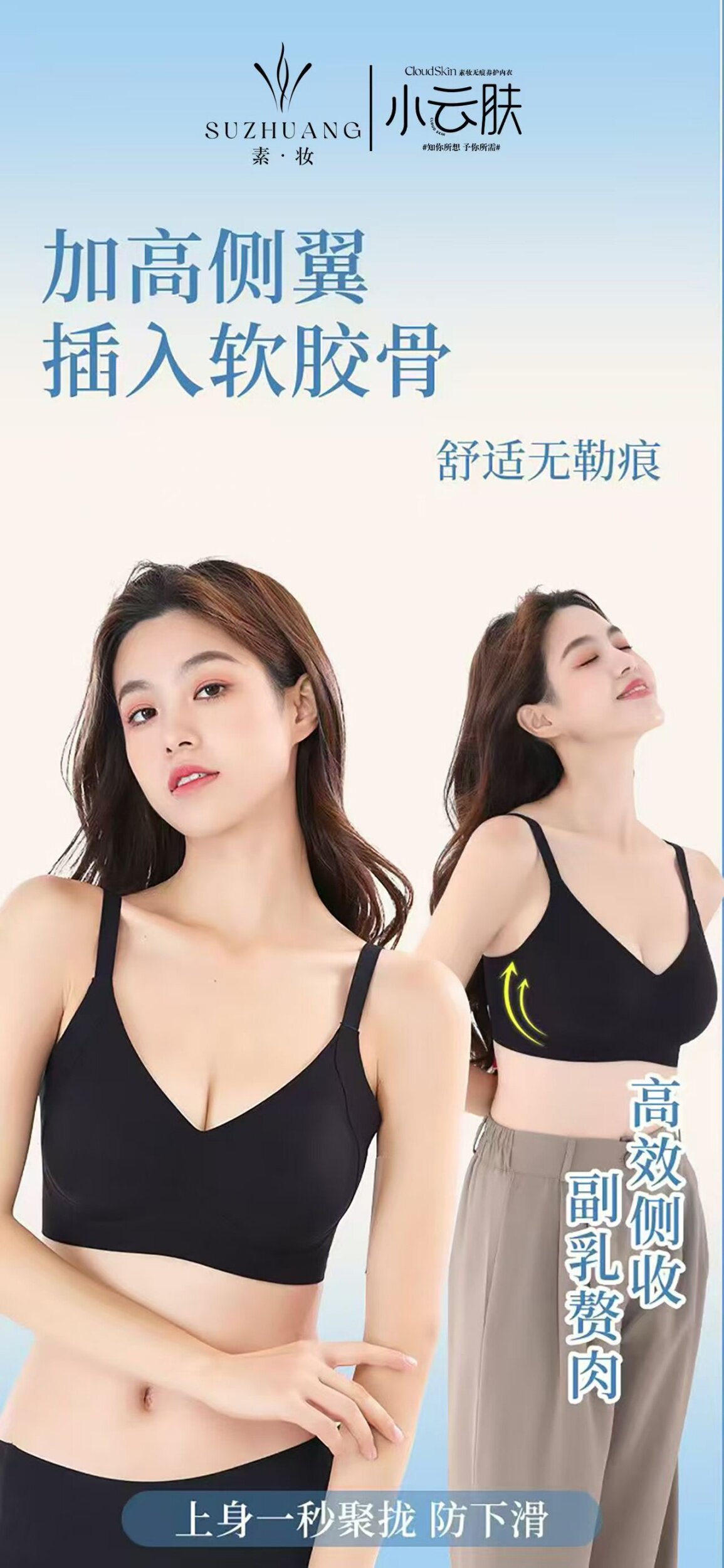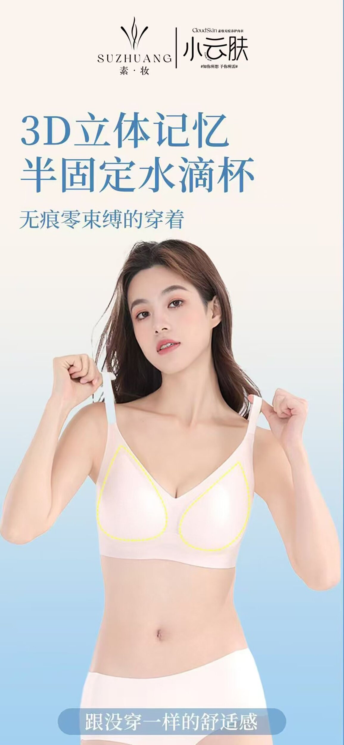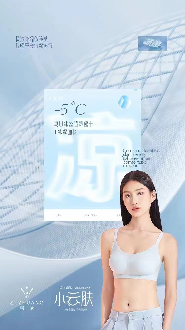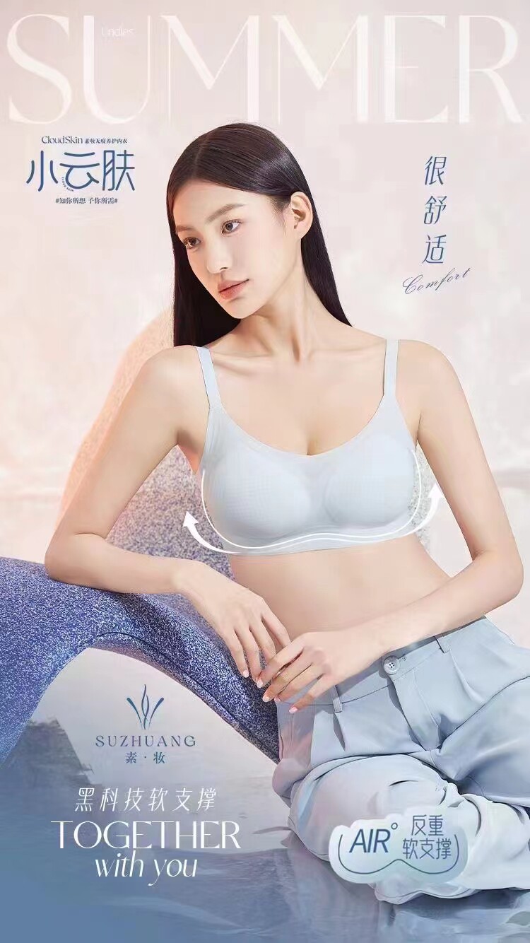 Простая макияж, маленькая облачная кожа 186 Ледяной шелк, красивая спина, быстрая сухая ультратонкая фиксированная чашка, стальное кольцо 326 Техническое нижнее белье, ладно ее