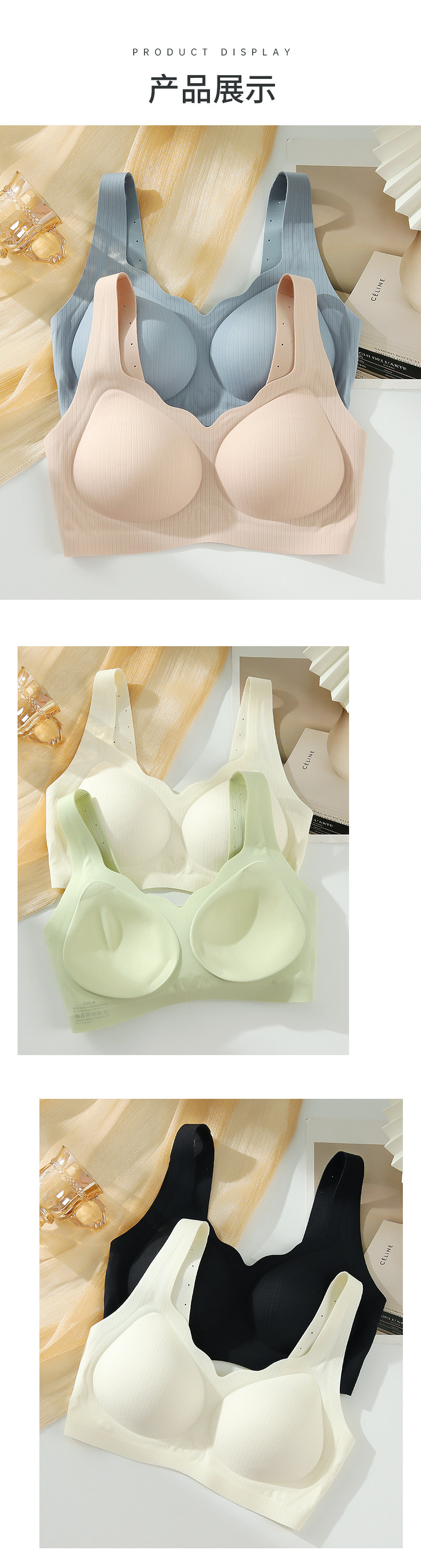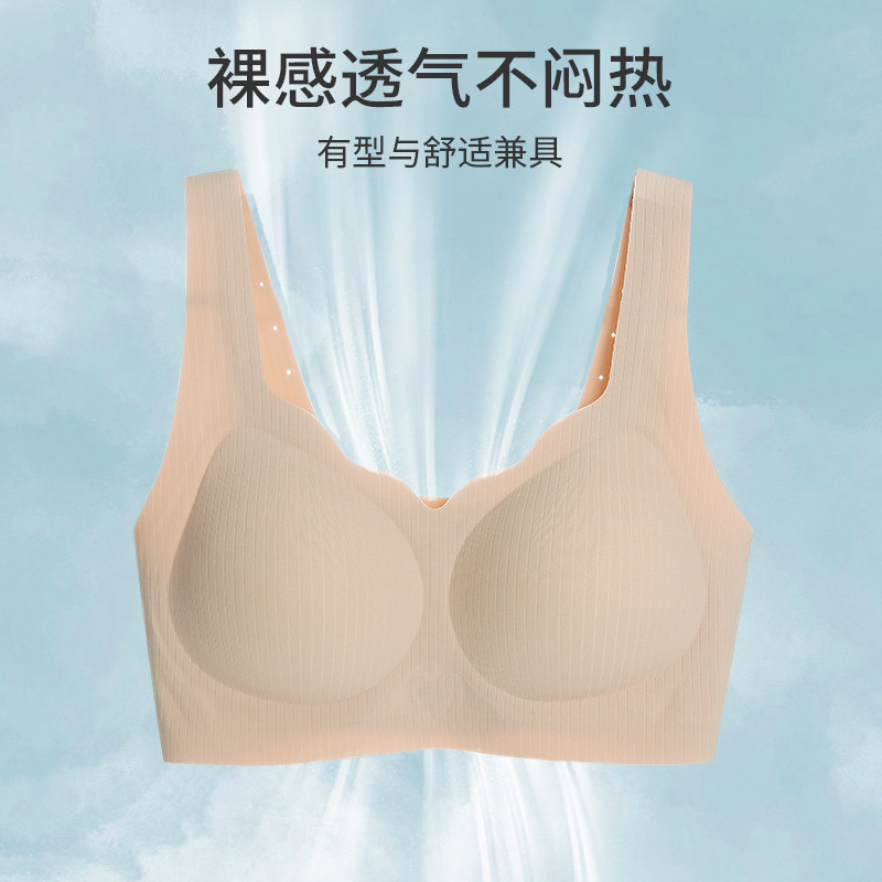 Нижнее белье без следа для женщин с большой грудью, небольшая поддержка с фиксированной чашкой, мягкая опора, стальное кольцевое кольцо.