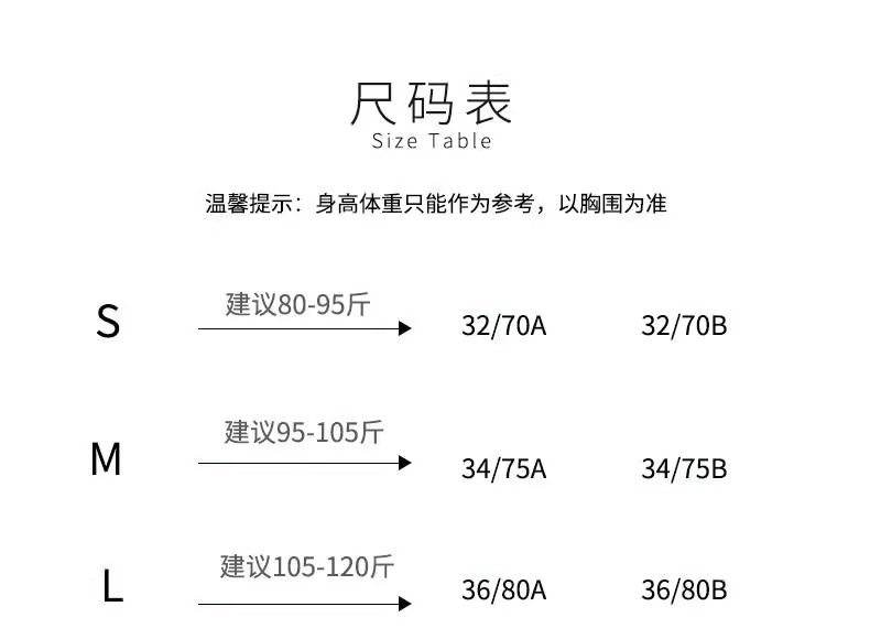 | Размер: | S [32/70ab Cup Tong], М [34/75AB Тонг Кубок], L 【36/80AB TONG CUP】, XL [38/85AB TONG CUP] |
