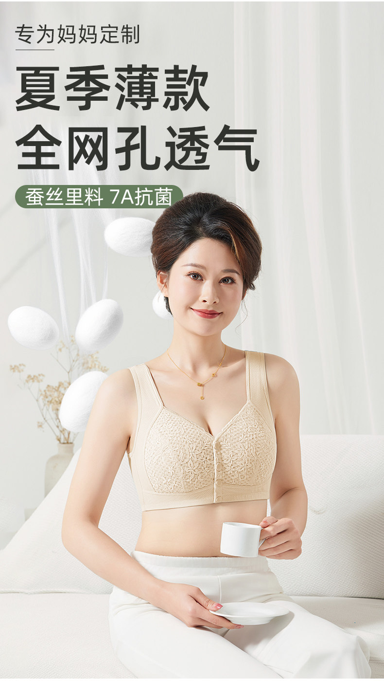 Нижнее белье для матери, тонкая летняя майка топ, шелковый бюстгальтер пуш-ап, дышащая чайная чашка, для среднего возраста, размер