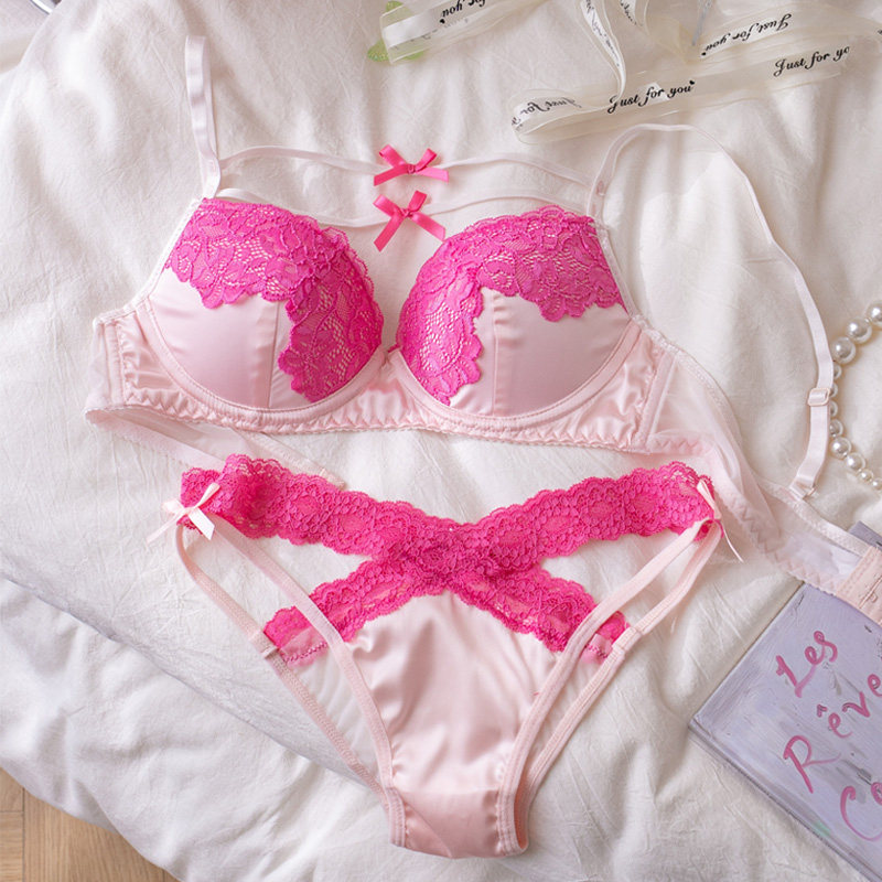 Бюстгальтер пуш-ап, сексуальное кружевное нижнее белье с бантиком, бюстгалтер со стальными косточками, комплект
