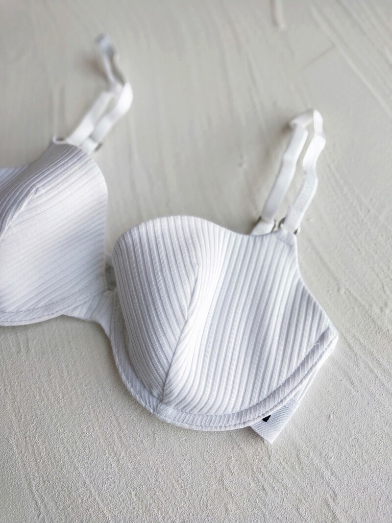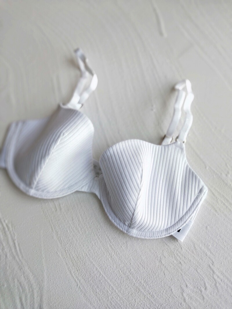 - Белый одиночный бюстгальтер может иметь слегка плавающую пыль