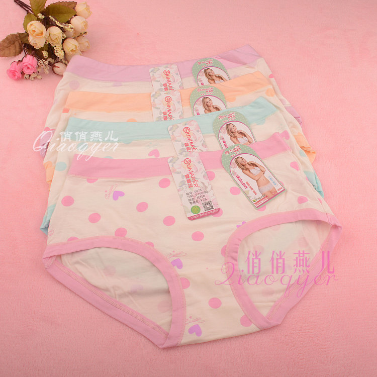 Шесть штук бесплатной доставки, подлинное нижнее белье на плоской подошве со средней талией и принтом Ou Meier для девочек 0875