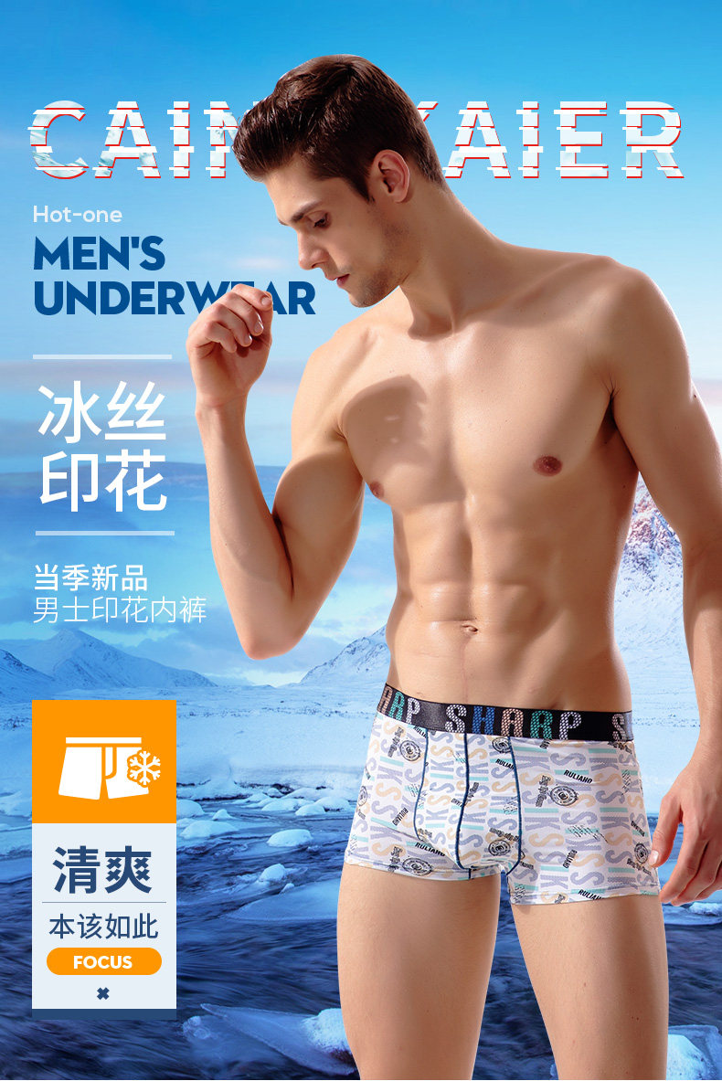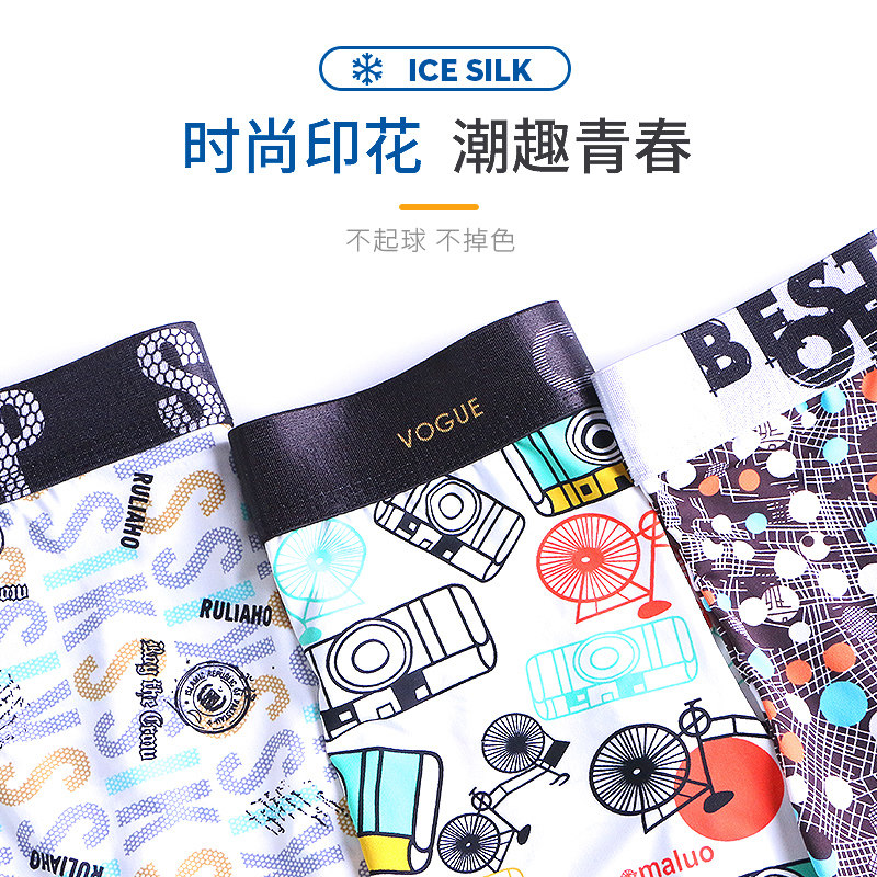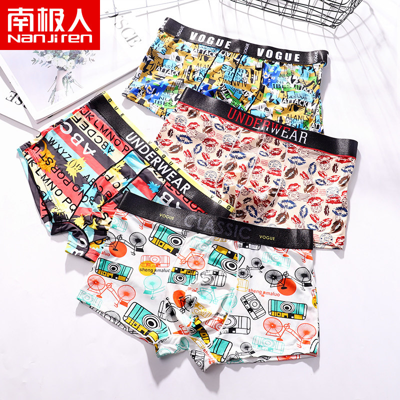 南极人 Мультяшные трусы, шелковое нижнее белье, мужские сексуальные летние штаны, средняя посадка