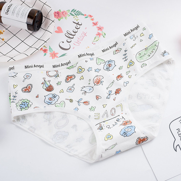 Хлопковое милое нижнее белье, шорты для школьников и студентов, трусы, средняя посадка
